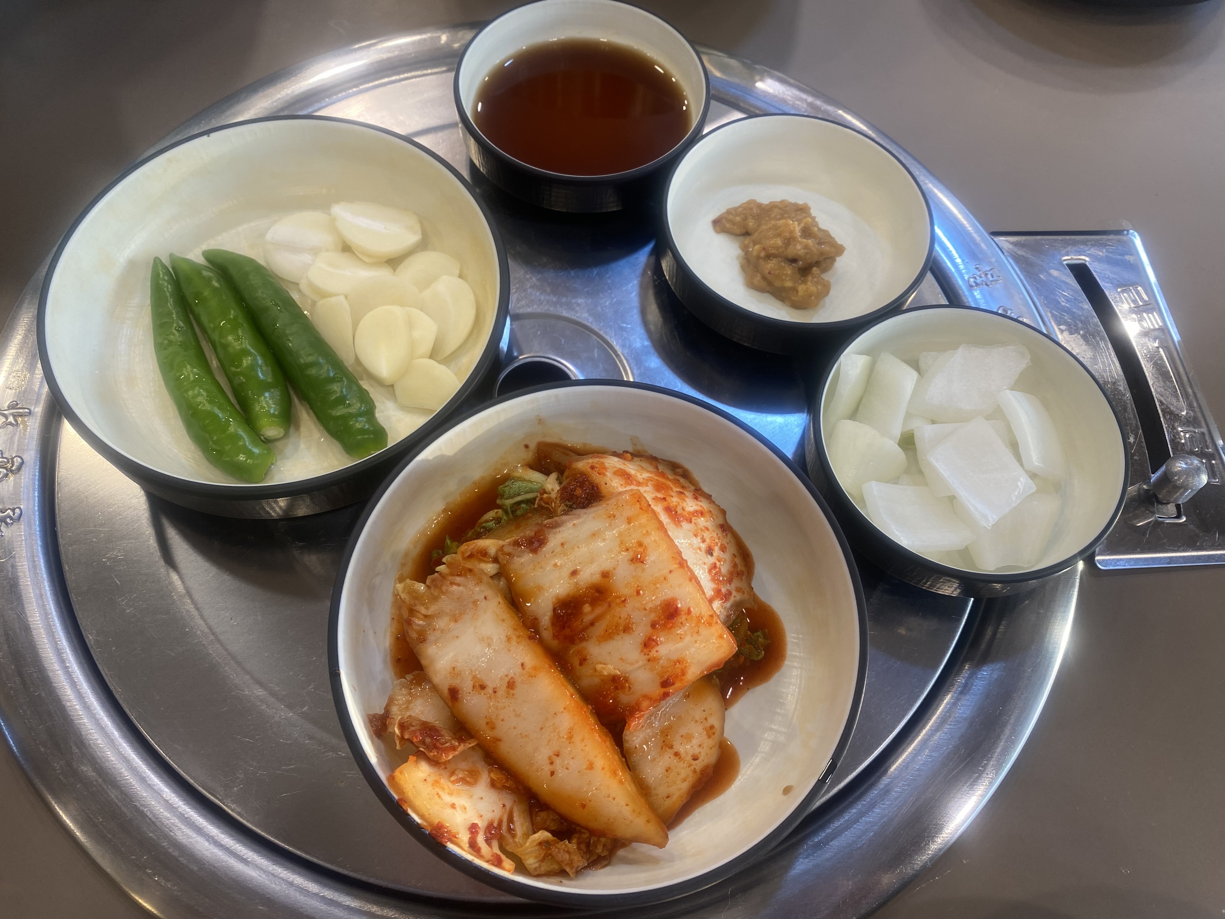 경주 방풍 국밥이 나왔는데요... 어라?? 사진에는 국밥 위에 초록색 모양이 한거 깔려있는데 이건 뭐.... 전형적인 돼지국밥 모양과 별반 다름이 없달까요? 방풍은 어디에???? 직원에게 물어보니 다대기 안에 방풍을 갈아 넣어서 그냥 다진 양념을 넣으면 된다고 합니다. 사진을 보고 시켰는데 기왕이면 모양도 일치를 좀 시켜주시지.....