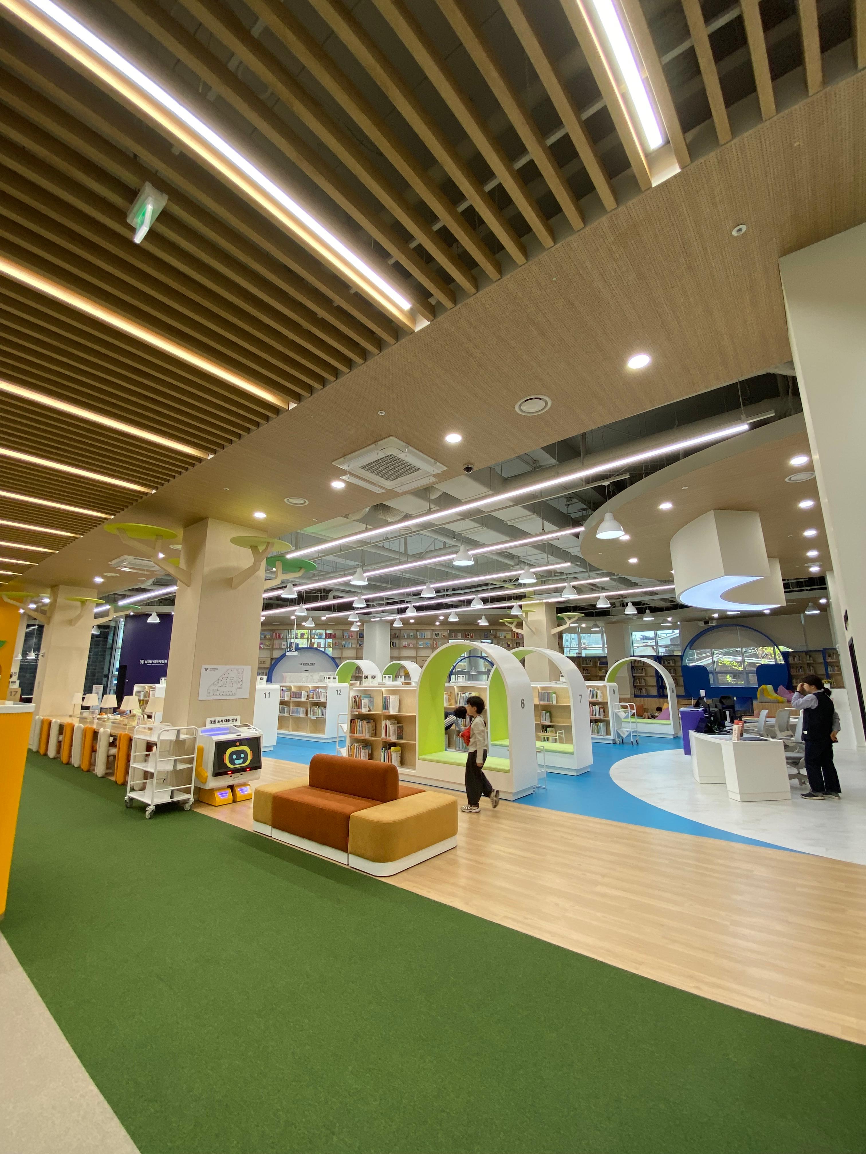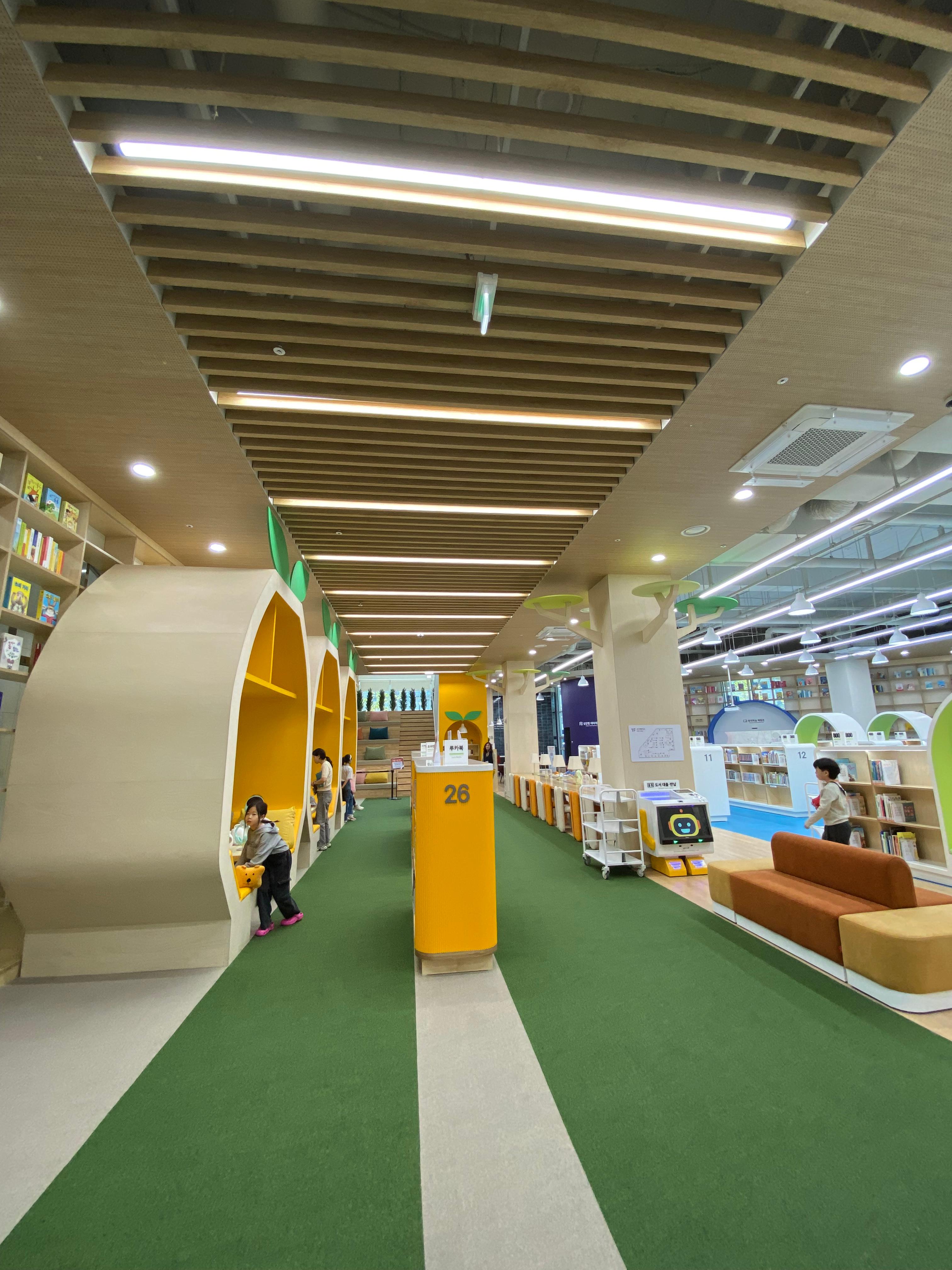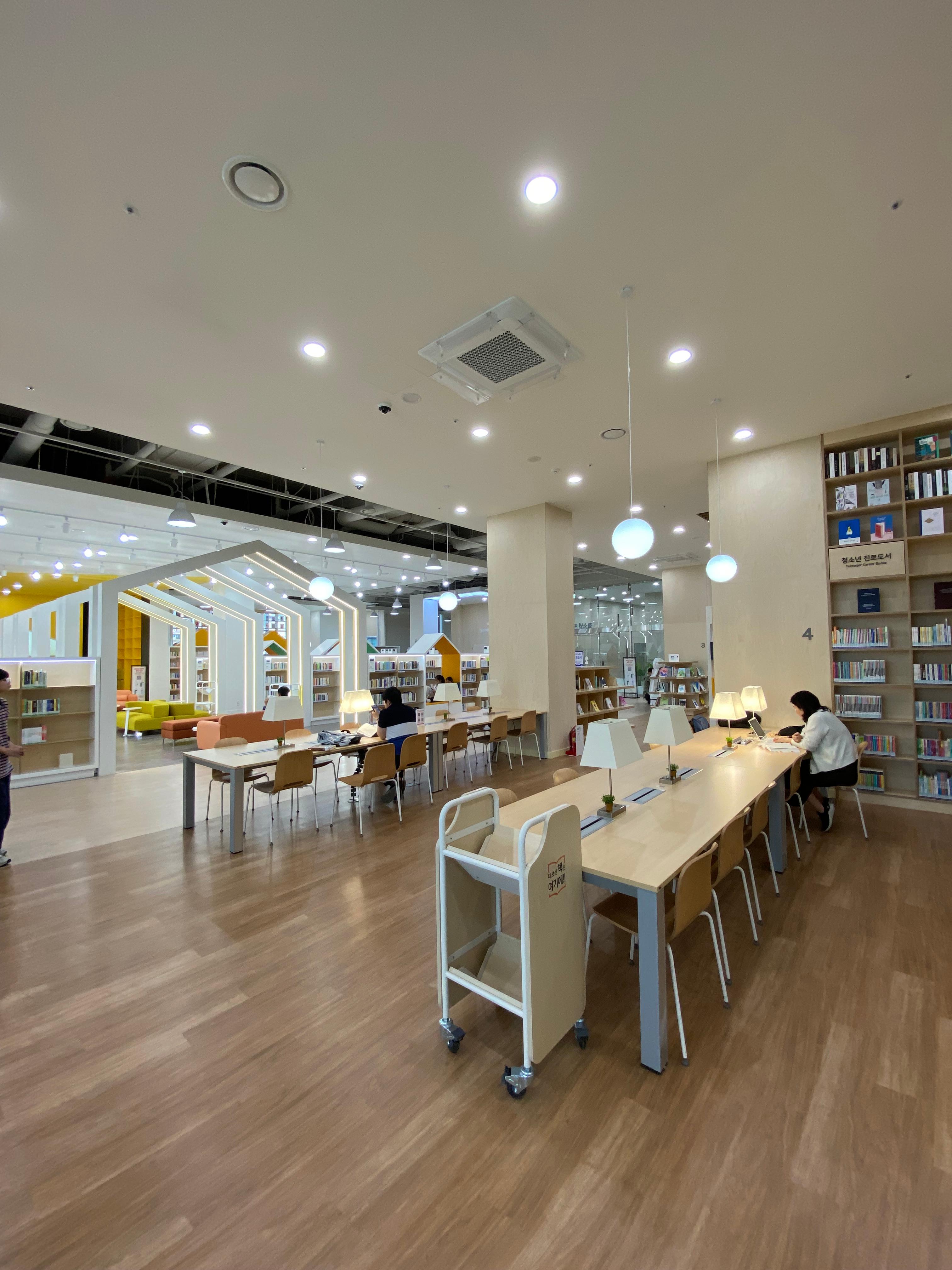 중구 종갓집 도서관에 갔을 때는 북 카페 같은 느낌의 인테리어로 우와~ 감탄이 나오면서 책을 빨리 읽고 싶은 맘이 팍팍 들었는데 도서관 1층은 어린이 전용으로 초등생들이 진자 다양한 공간의 책상에 앉아서 책을 즐길 수 있게끔 되어 있습니다. 색깔도 너무 아기자기한 밝은색으로 잘 꾸며져 있습니다.