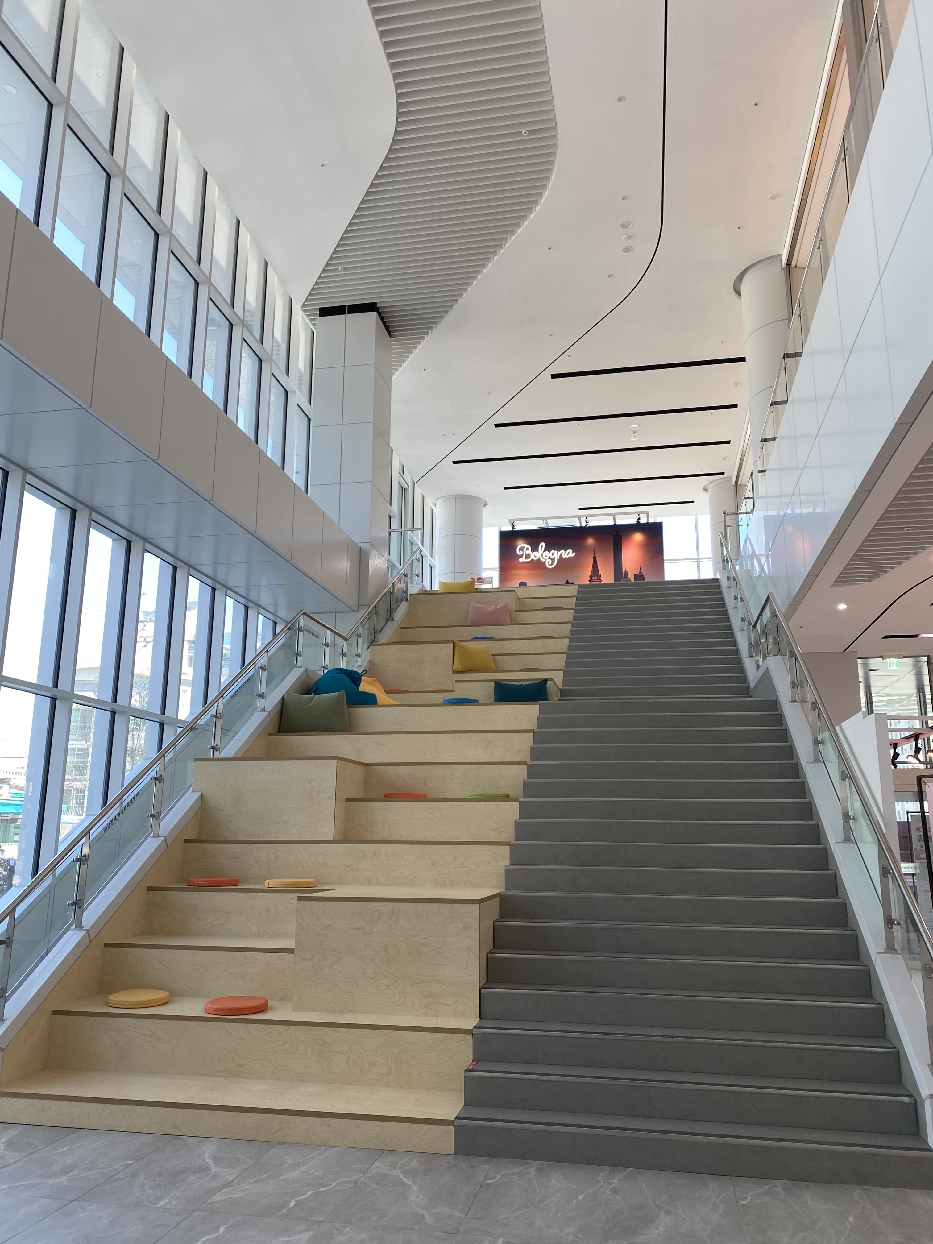 종하이노베이션센터 실내로 들어오면 우측에 2층으로 올라가는 계단이 있는데 그곳도 절반은 좌식으로 책을 읽을 수 있는 공간으로 마련해놨고 계단을 통해 올라가면 본격적인 볼로냐 일러스트 특별전을 관람할 수 있습니다. 특별히 드는 비용은 없고요, 그림들이 너무 이뻐서 눈이 휙휙 돌아갑니다.
