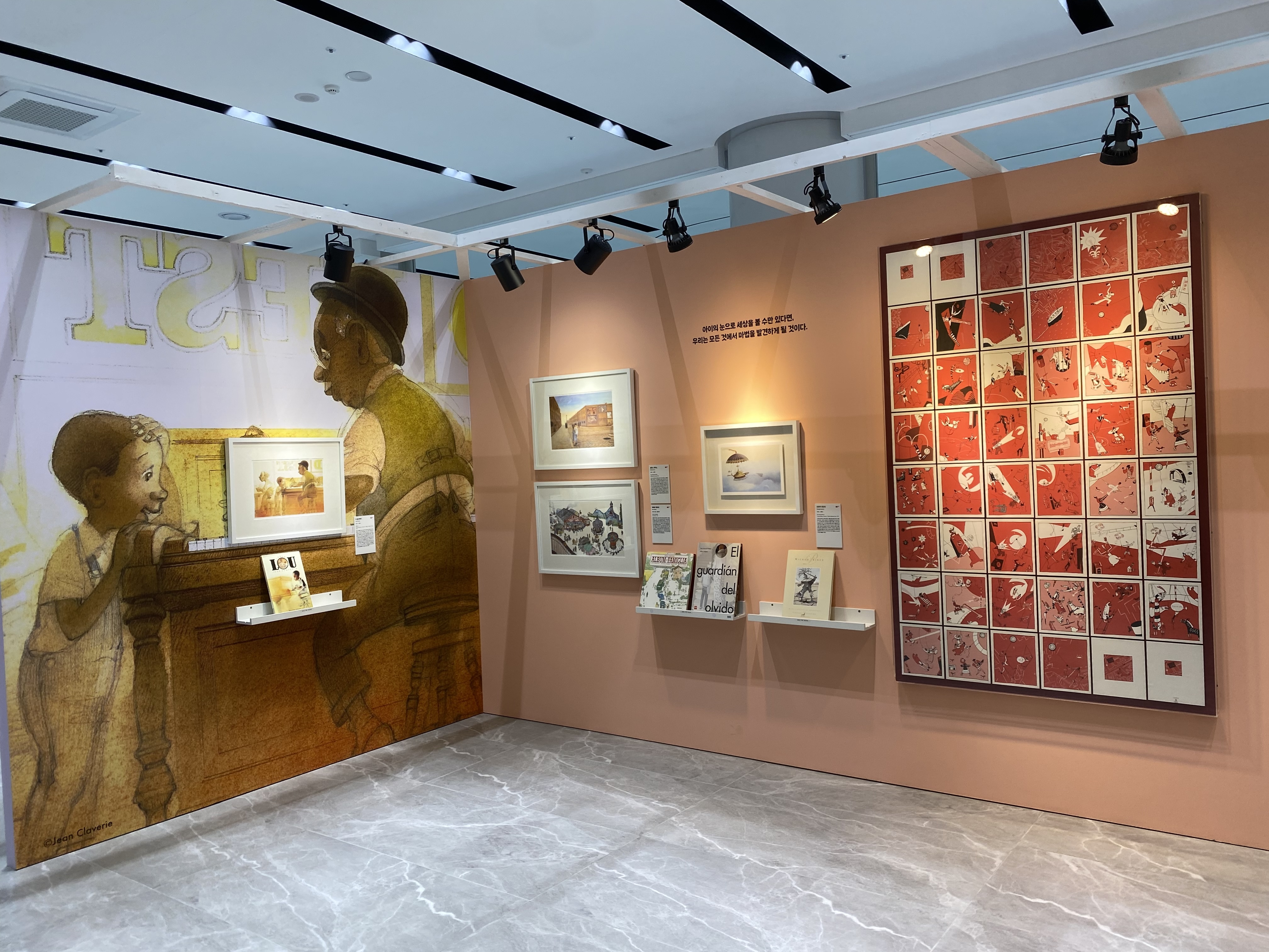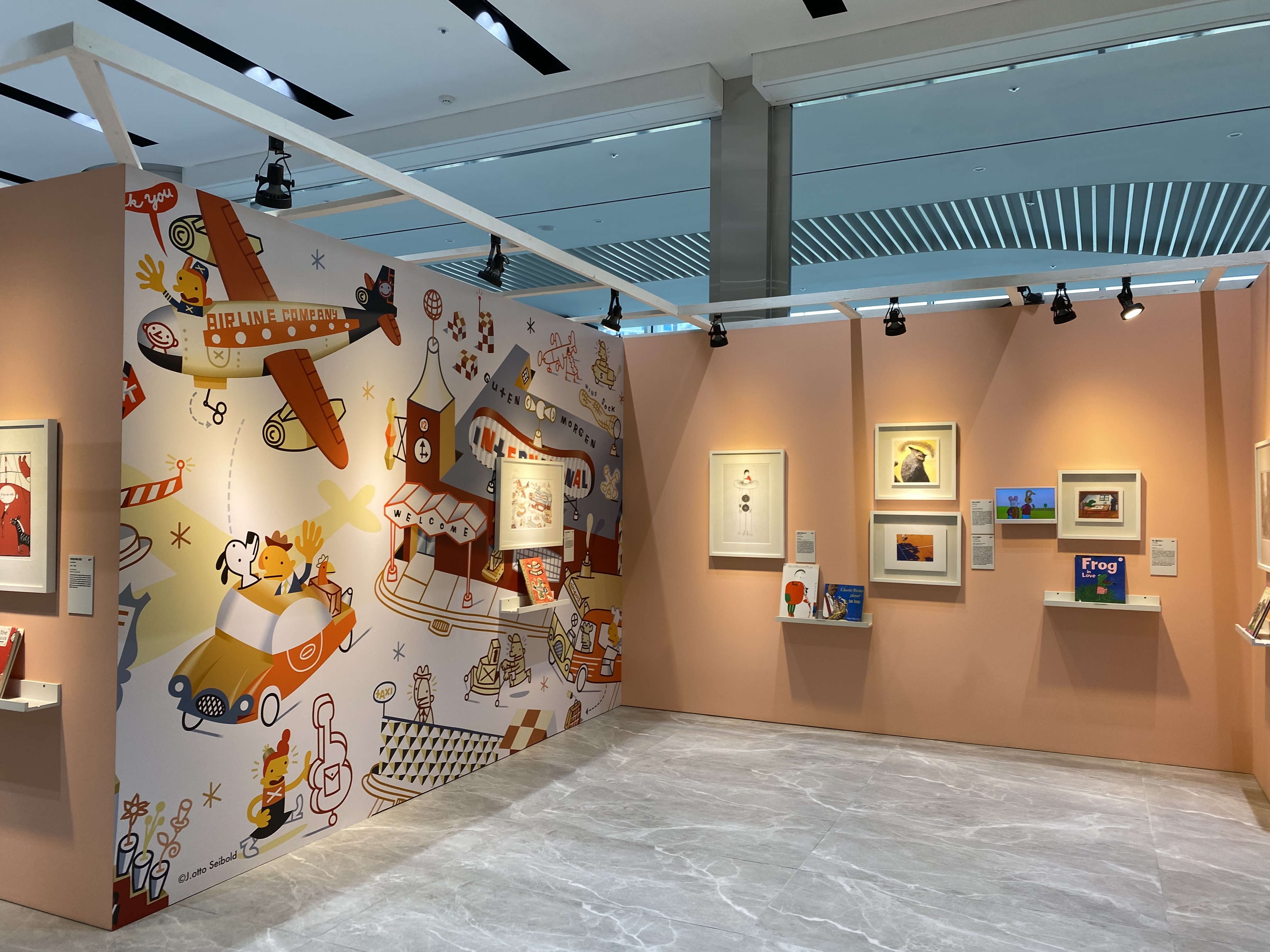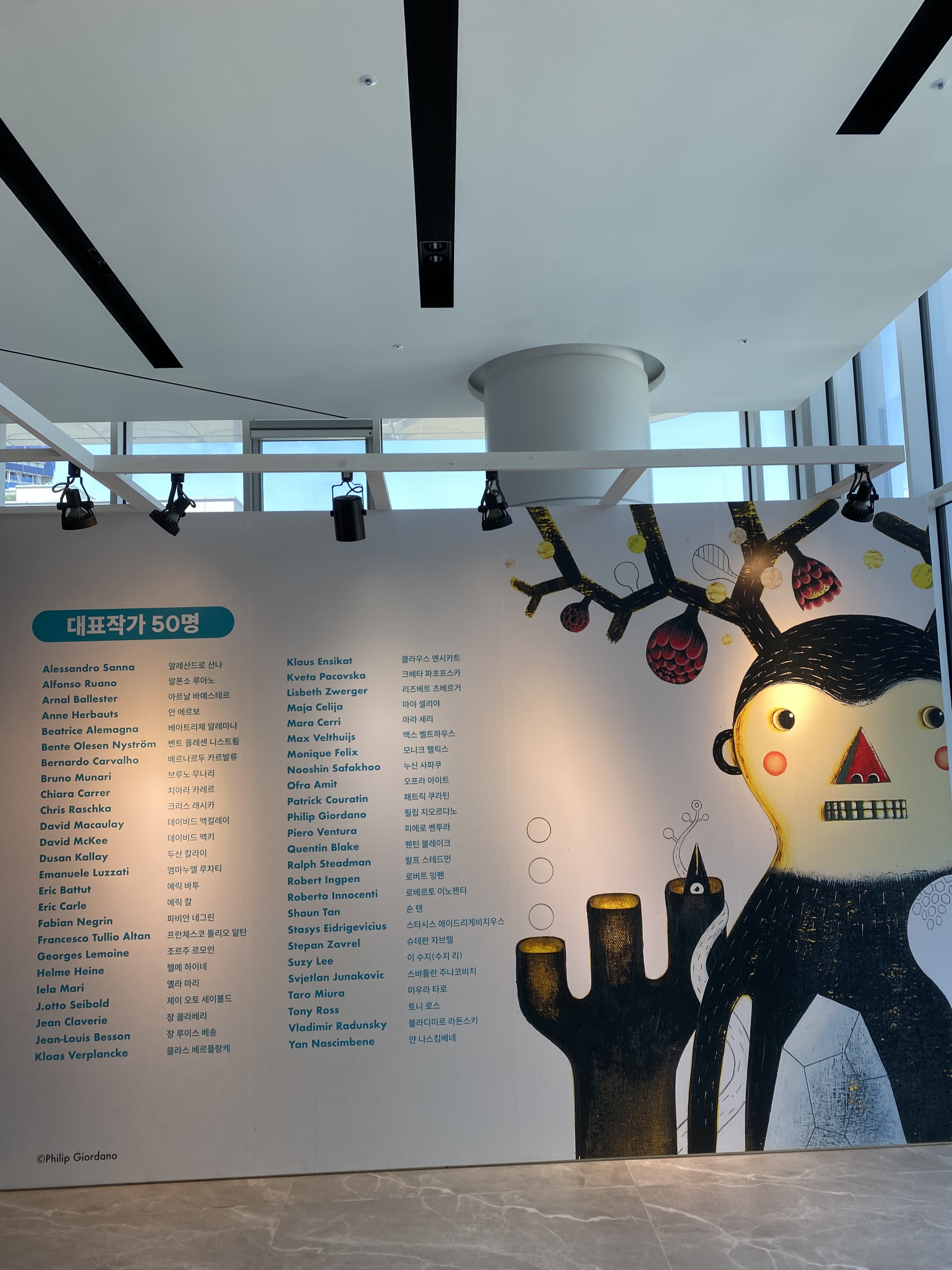 각 공간마다 작가들의 대표 일러스트가 벽화처럼 꾸며져있는데요, 맘에 드는 일러스트 작가가 있다면 그냥 지나치지 말고 책도 함께 전시되어 있으니 작가의 일러스트 작품집을 꼭 한번 다 보고 가보시길~!!