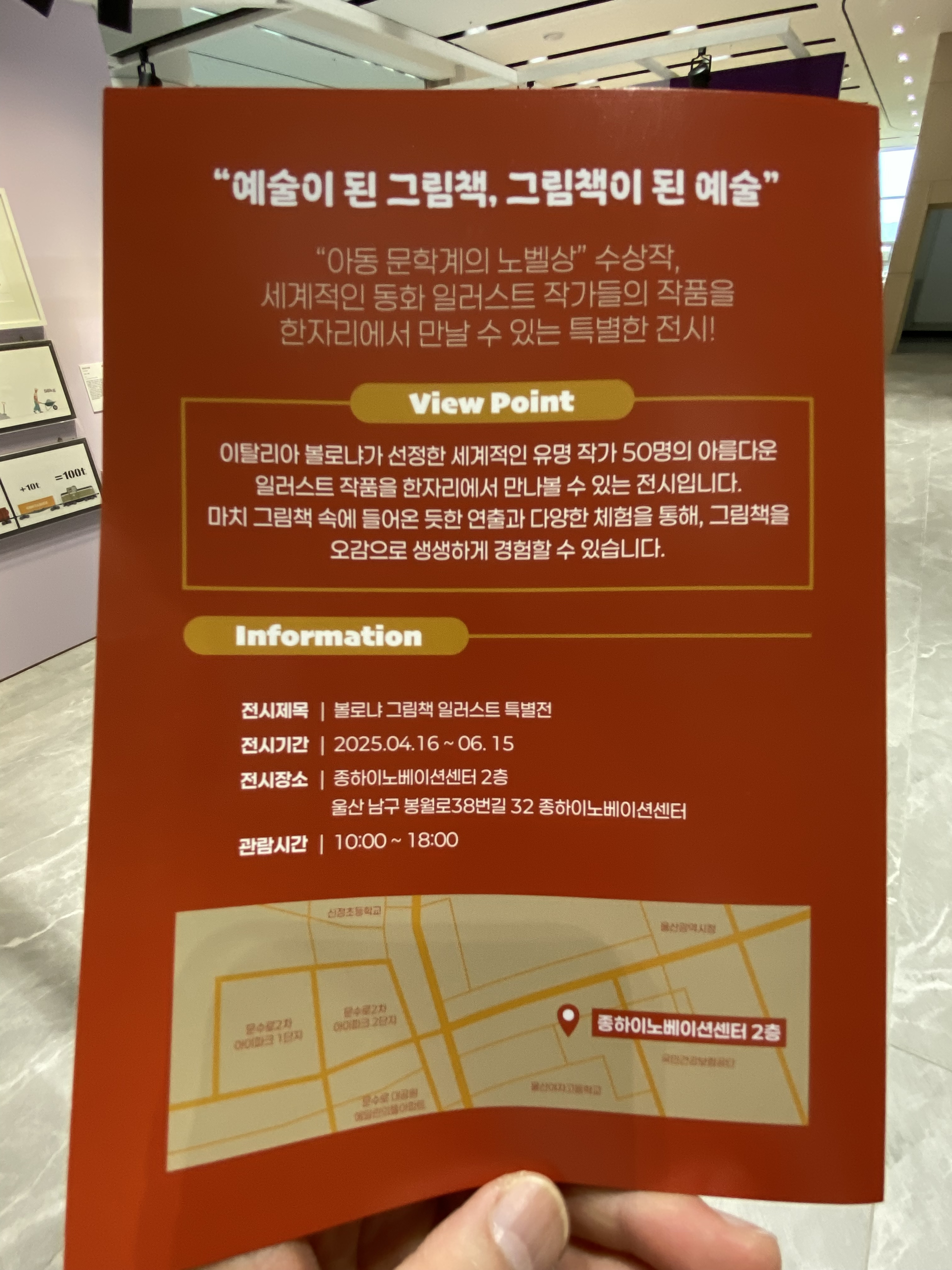종하이노베이션센터가 드디어 긴 공사기간을 잘 마치고 개관을 했습니다. 건물 내부에는 체육관도 있지만 어린이청소년 도서관이 새롭게 오픈되어 있어서 아마도 곧 있으면 남구 어린이와 청소년들에게 최고의 인기 방문지가 되지 않을까 생각을 해보는데요, 오늘은 도서관 말고 종하이노베이션센터 개관 기념으로 진행되고 있는 '볼로냐 그림책 일러스트 특별전'에 관련해 작성해 보도록 하겠습니다. 특별전 기간은 25년 4월 16일부터 6월 15일까지 두 달간 진행되고 있으니 일러스트에 관심 많으신 분들은 꼭 한번 참석해 보시기 바라요^^