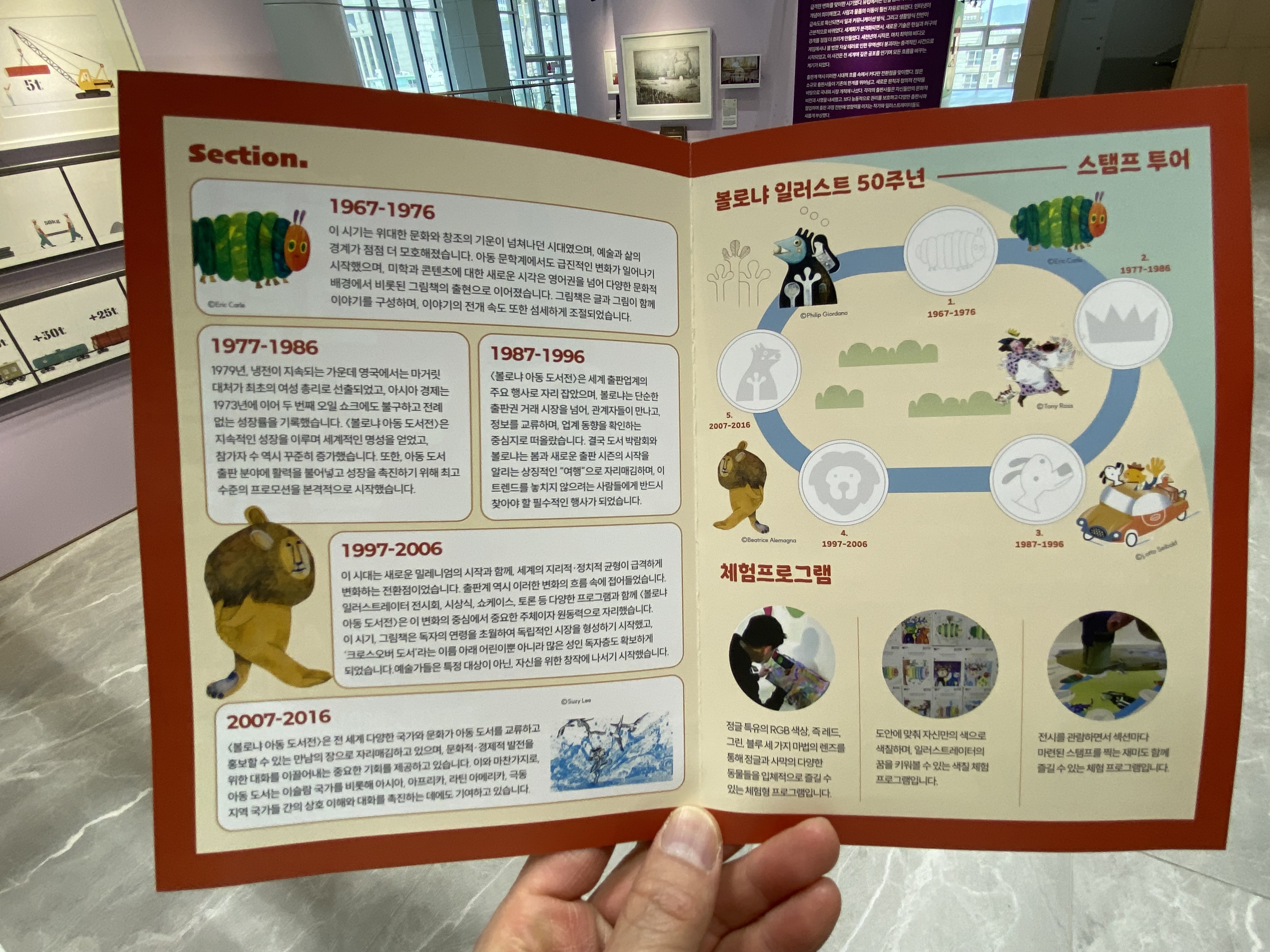 어린이청소년 도서관에 들렀다가 잠시 쉬어간다는 느낌으로 쭉 돌아봐도 괜찮고요 일러스트 좋아하시는 분들에겐 큰 공부가 될만한 전시회입니다. 다만, 특별전이 가장 최근에 완공된 곳에서 전시회가 진행되다 보니 새집 인테리어 공사하고 끝낸 냄새가 좀 심하달까요? 마스크를 꼭 끼고 관람하는 게 도움이 될 거 같습니다. 아니면 냄새가 좀 빠지고 5월 말 경이나 6월 초순경에 방문해 보시는 게 좋을 거 같다는 생각이 들었습니다. 가족 나들이로 꼭 한번 강추합니다!!!