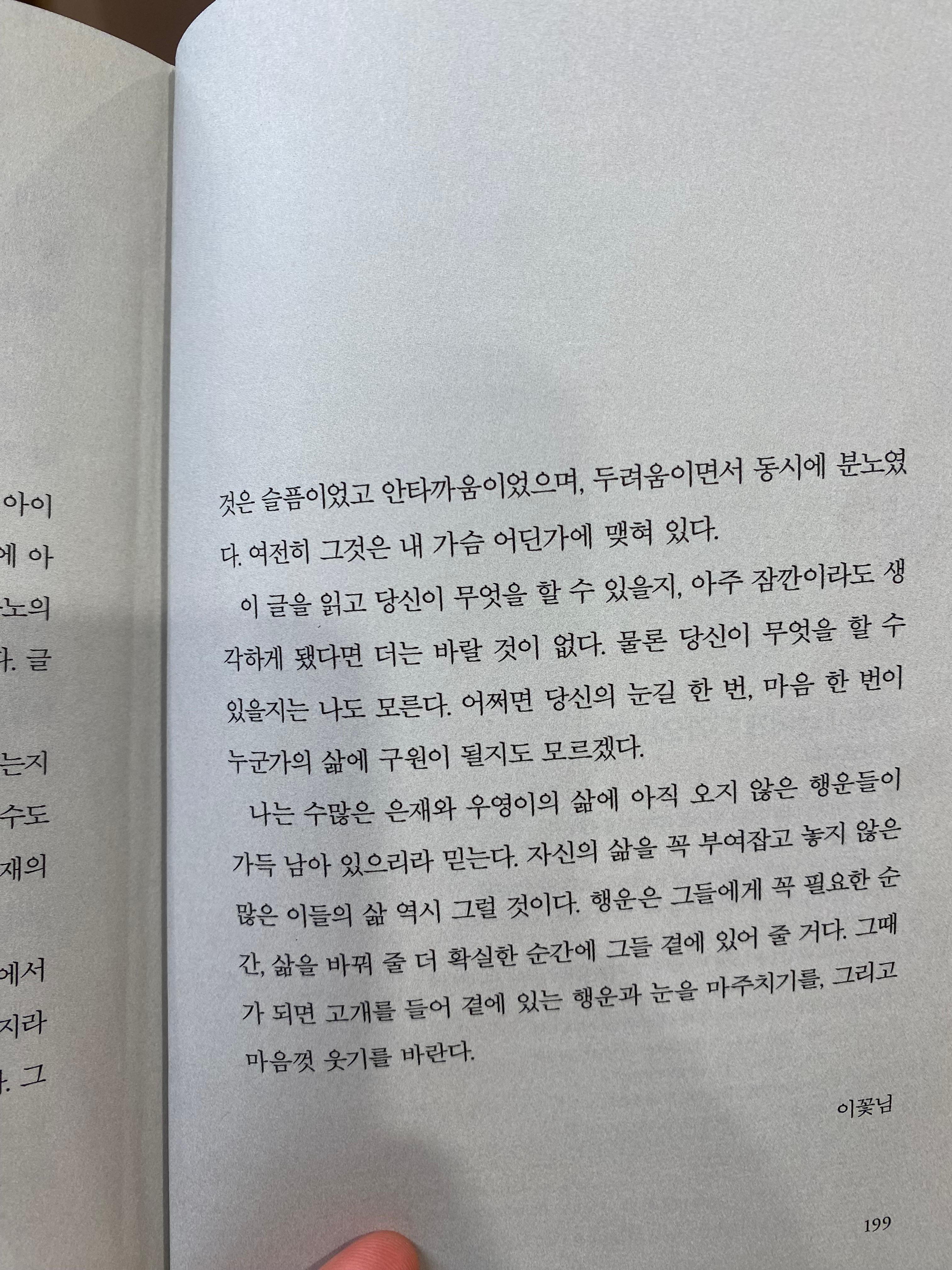 제가 요 책들을 읽기 전까진 판타지 분야나 대하소설 같은 책을 읽고 있었는데 확실히 요즘 나오는 책들이 굉장히 심플하면서 읽기가 너무 편해 한번 읽기 시작하면 끝까지 집중해 금방 읽게 됩니다. 두 책 모두 하루에 다 읽었던 책이고요 자라는 청소년들과 부모님들도 꼭 한 번씩 읽어봤으면 하는 책 되겠습니다.