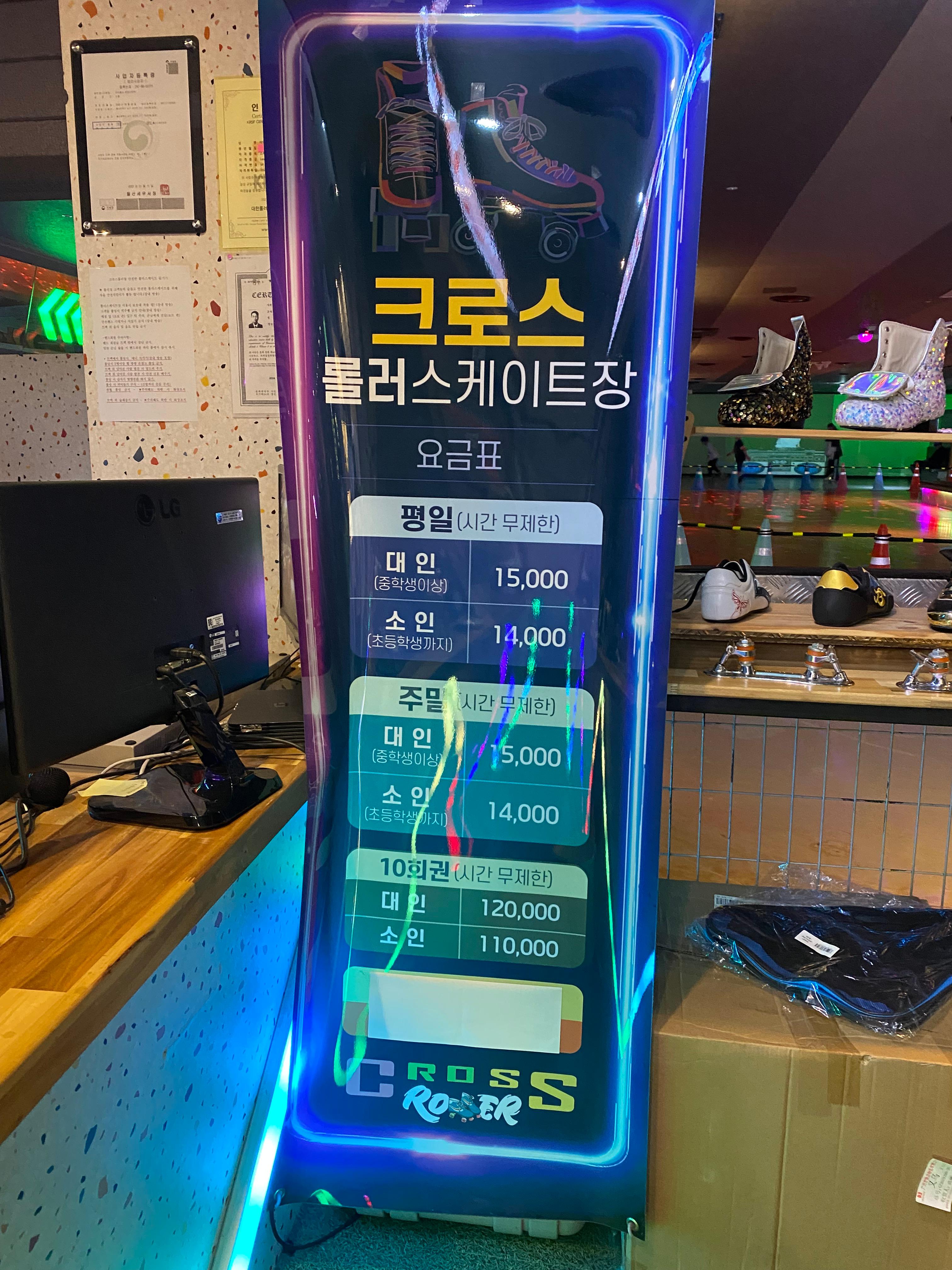 요즘 엄마가 너무 바빠 주말도 저랑 단둘이 보내게 되는 경우가 많은데 마침 잘 되었다 싶어서 바로 실행을 옮기게 되었습니다. 울산 도서관에서 책 반납하러 가는 날에 삼산 뉴코아아울렛 지하에 있는 롤러스케이트장을 방문했답니다. 상호는 '크로스 롤러스케이트장'입니다.