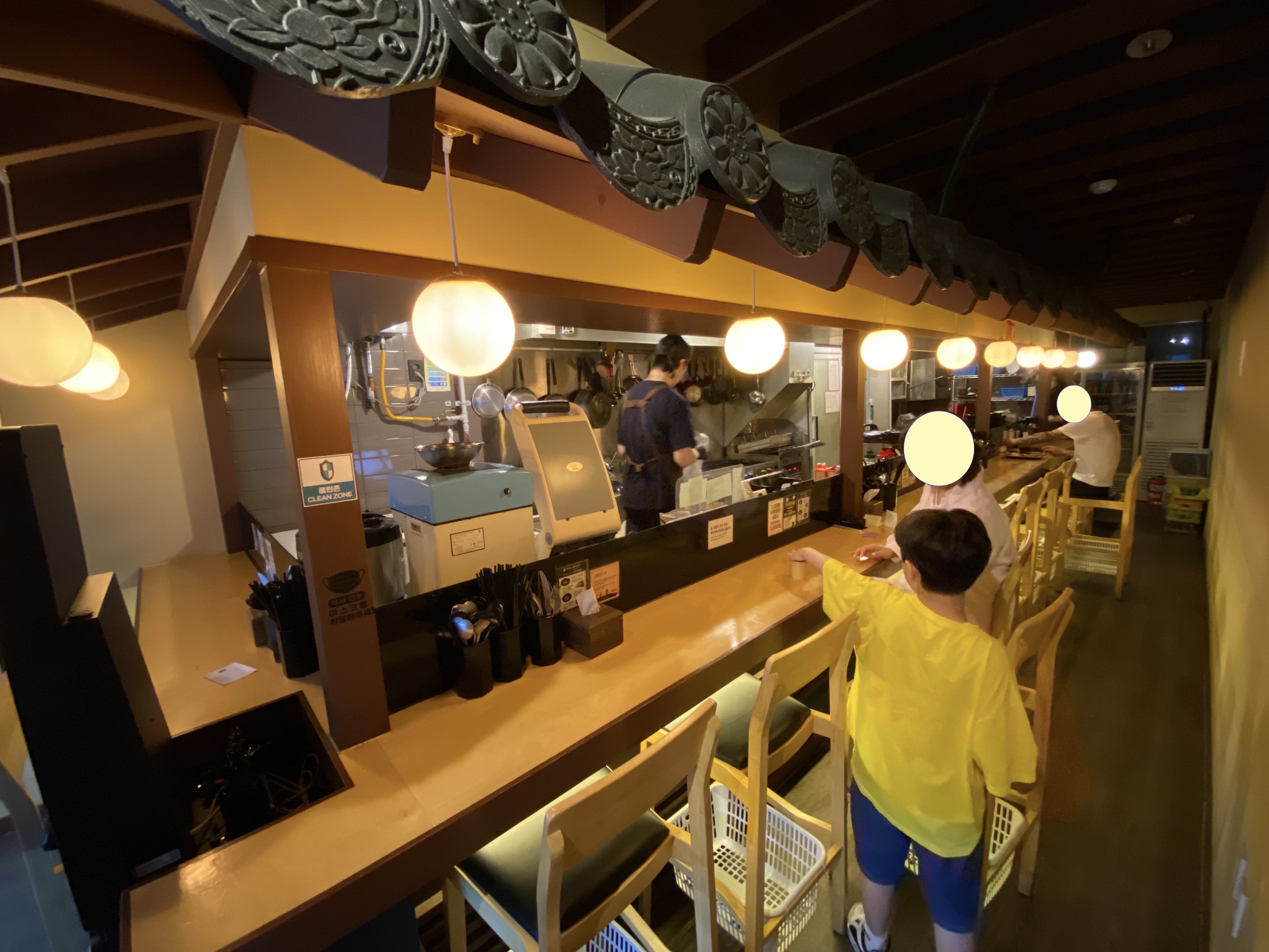 문을 열고 들어가 보니 단체석 따위는 존재하지 않습니다. 기다란 바 형태로 8명 정도 착석 가능한 자리가 있습니다. 뭘 먹어볼까 고민하다가 ......