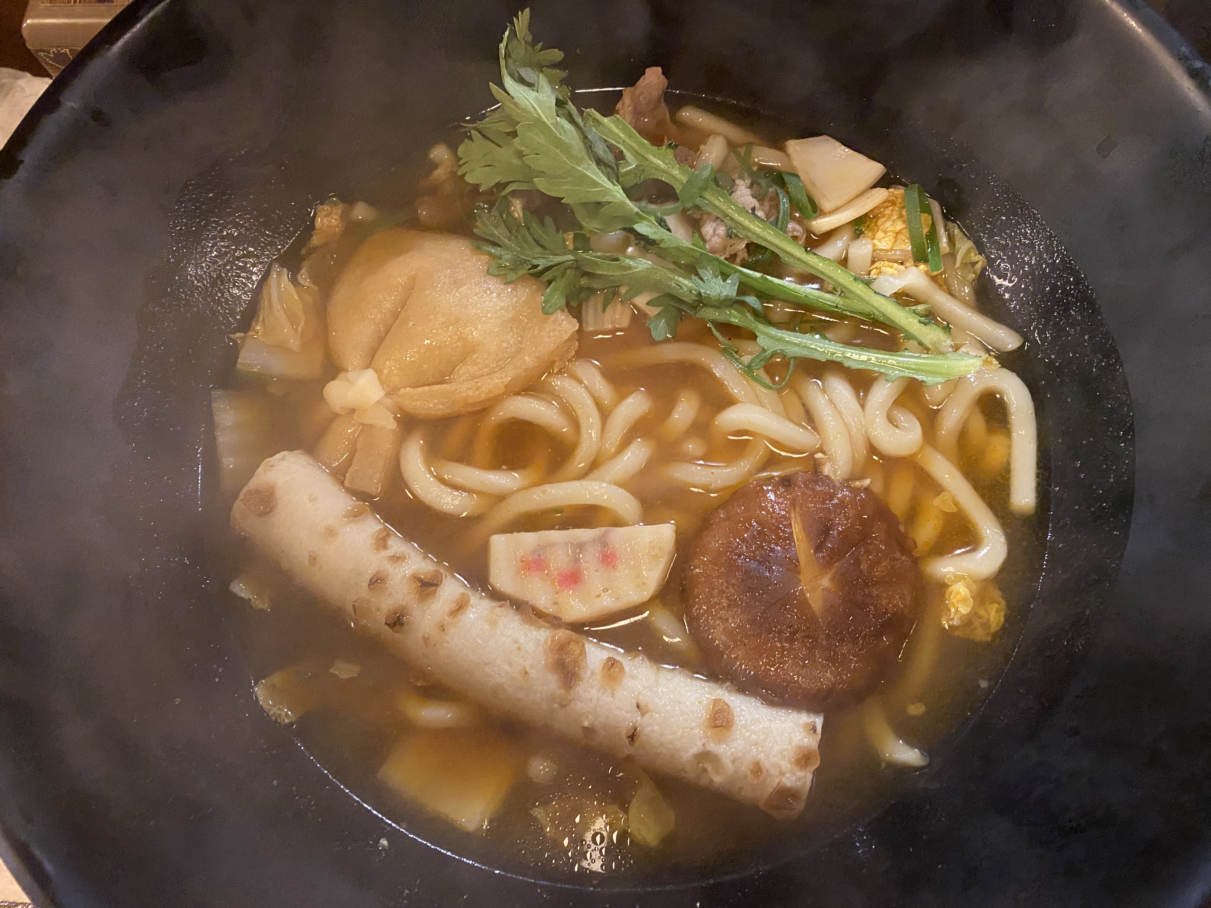 와이프님 먹고파서 주문한 얼큰한 치쿠와 우동이 나왔습니다. 실내와 우동의 온도차 때문에 쉼 없이 연기가 올라와 사진을 이쁘게 담을 수 없었는데 맛은 역시나 와이프님 입맛에 잘 맞았는지 면치기 하기 바쁘더군요.