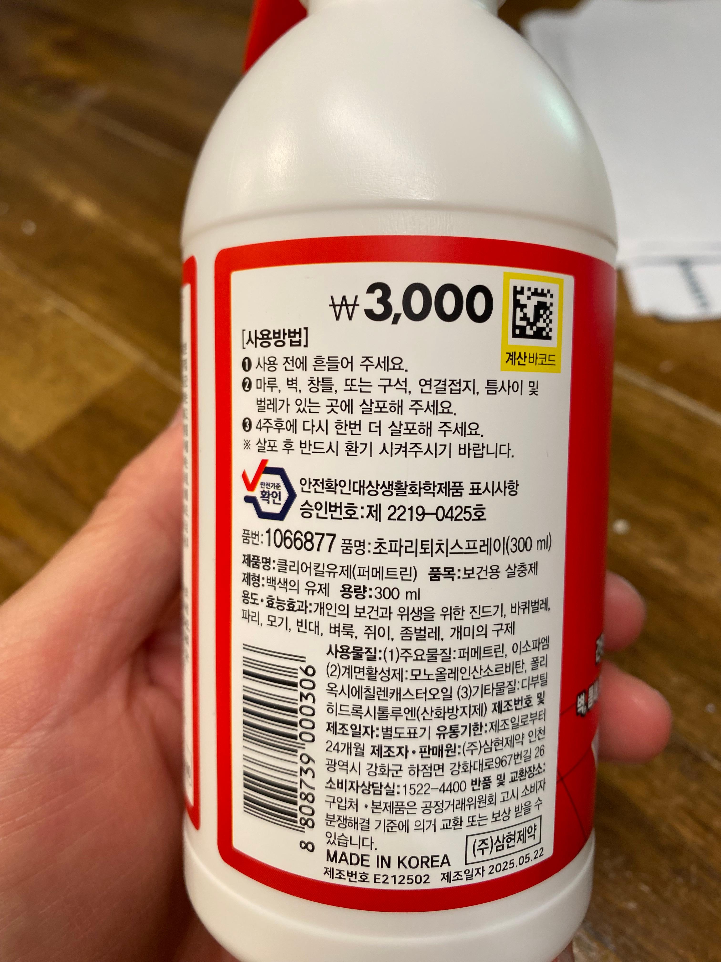 퇴치제 사용법은 초간단입니다. 분사하기 전 흔들어주고