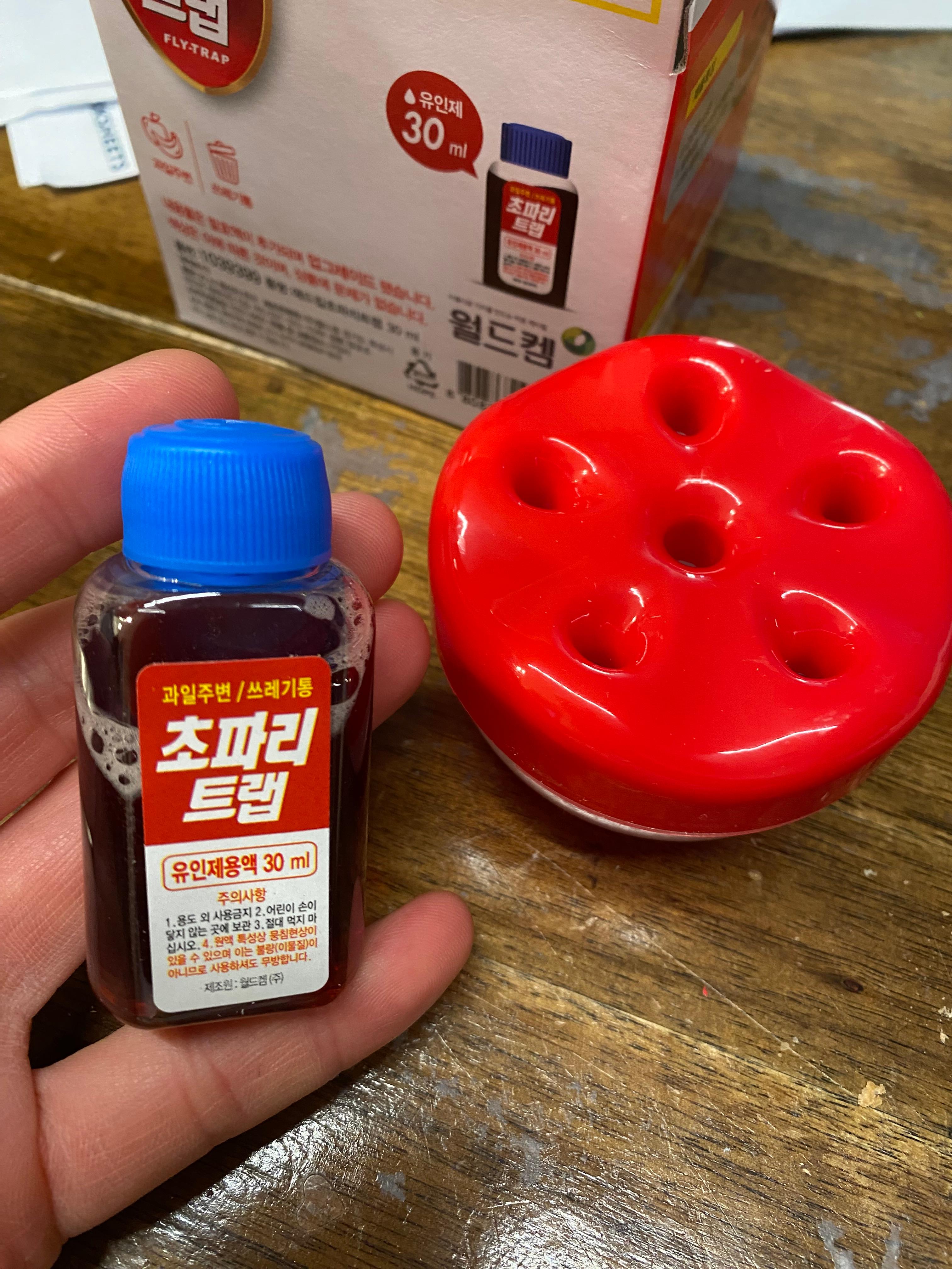 뚜껑을 닫고 싱크대 주변의 초파리 부대가 집단으로 거주하는 곳에 놔두면 트랩 설치는 끝!!