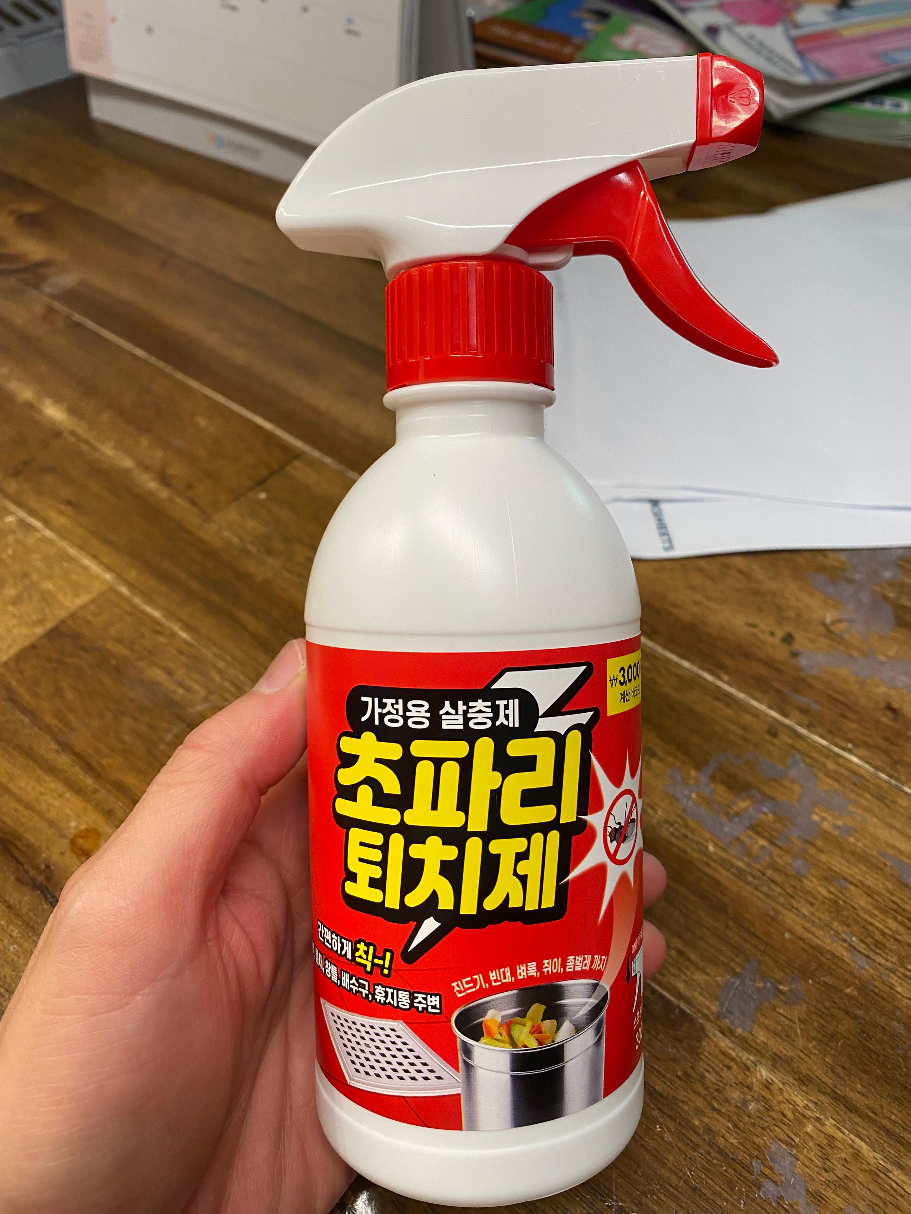 퇴치제는 아무래도 살충제니께 용기나 음식물 주변에 뿌려주면 안 되니 사용 시 주변을 잘 확인해서 분사해 줍니다. 애프 킬라처럼 모기 잡듯이 뿌리면 바로 효과가 나는 게 아니라 초파리 주변으로 서너 번 뿌려주고 나서 잠시 다른 곳에 갔다 오면 바닥에 초파리 잔해를 확인할 수 있습니다. 요즘은 음식물 쓰레기에다가 바로 뿌려주는데 더 이상 초파리가 생기진 않네요.