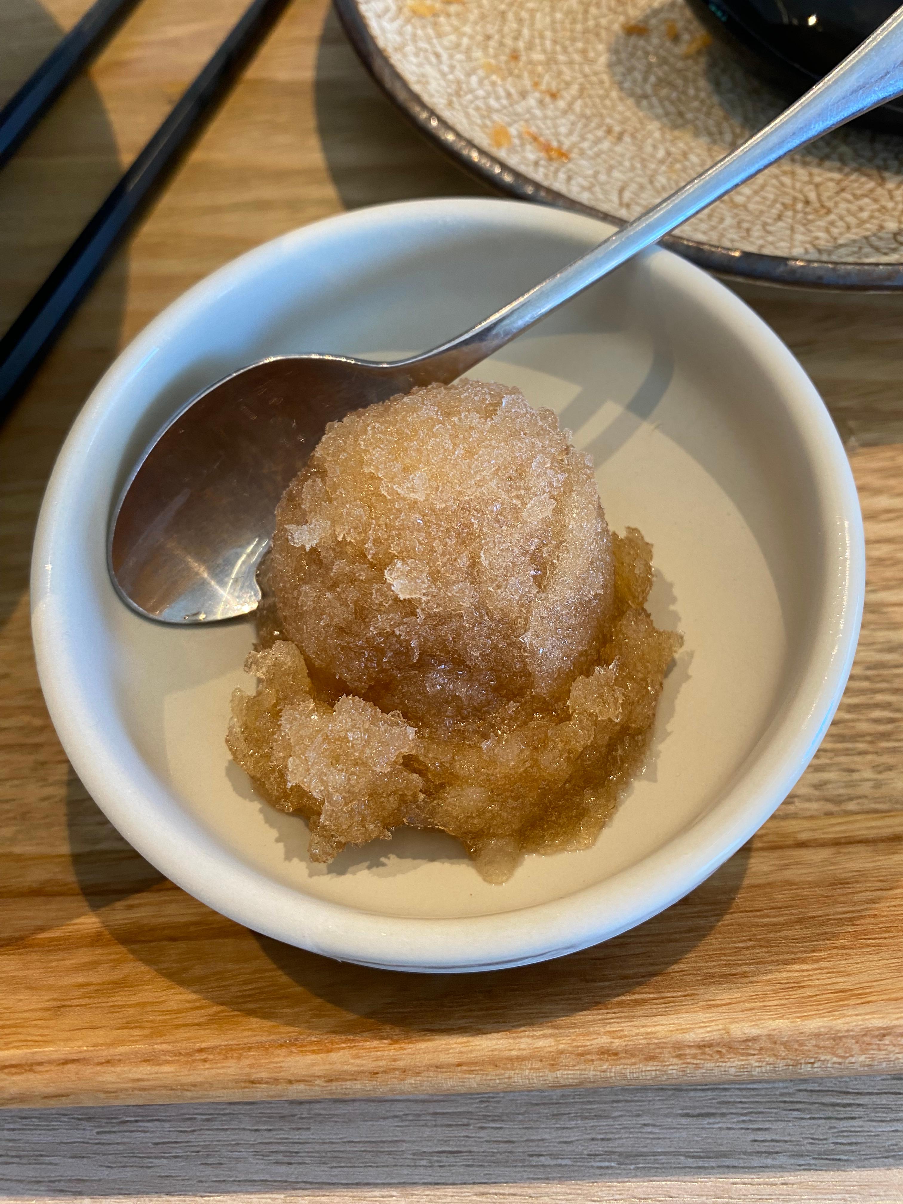 식후 디저트로 매실샤베트가 나옵니다.