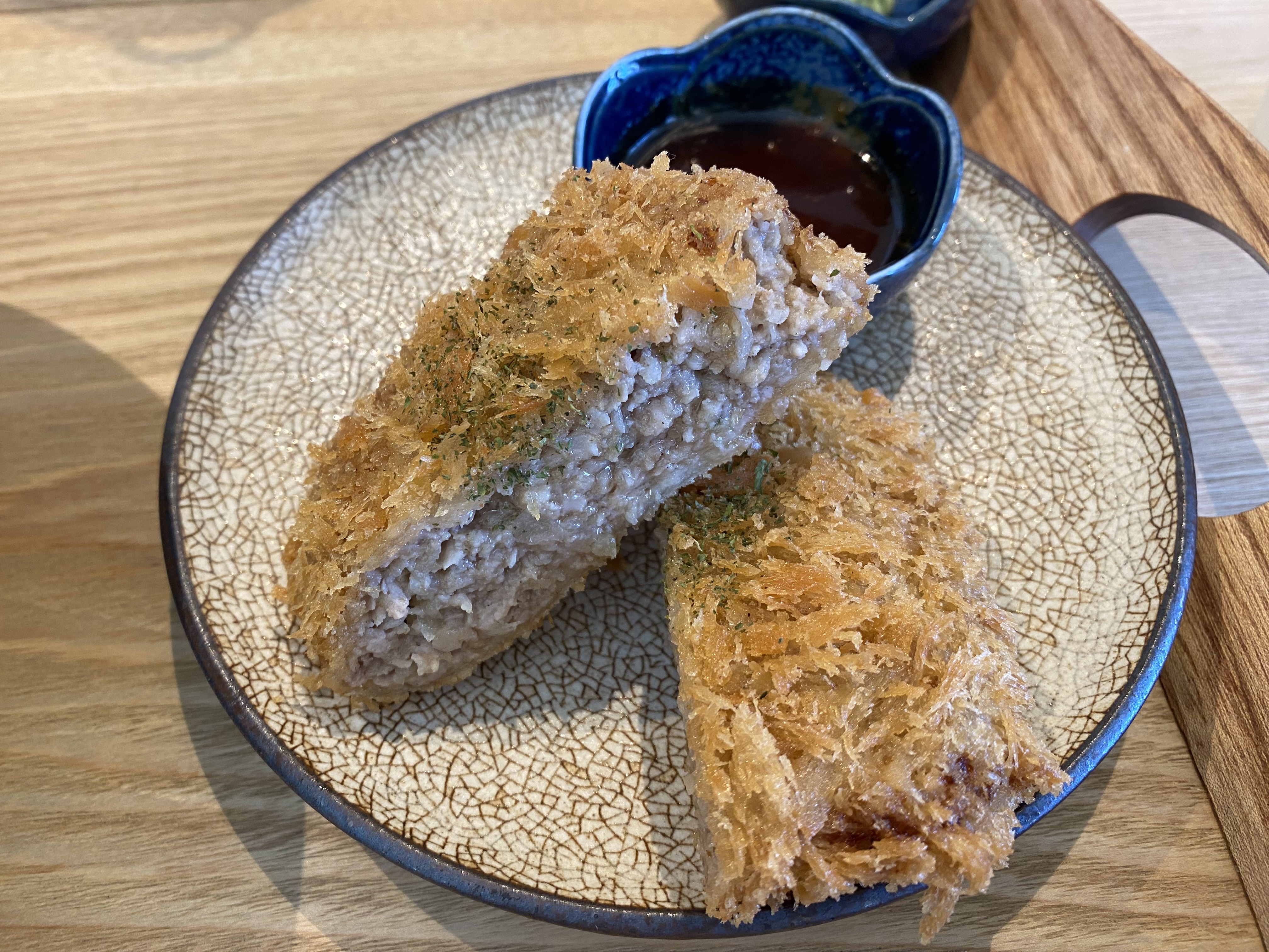 기본으로 나오는 매운 소스 한번 찍고, 추가로 주문한 돈카츠 오리지널 소스를 다시 찍어서 두 가지 소스를 동시에 멘치카츠랑 맛을 보시길 강력 추천합니다. 매운맛은 멘치카츠의 느끼함을 잡아주고 오리지널 소스는 멘치카츠 풍미를 더해줘서 그 맛을 배가시켜 줍니다.