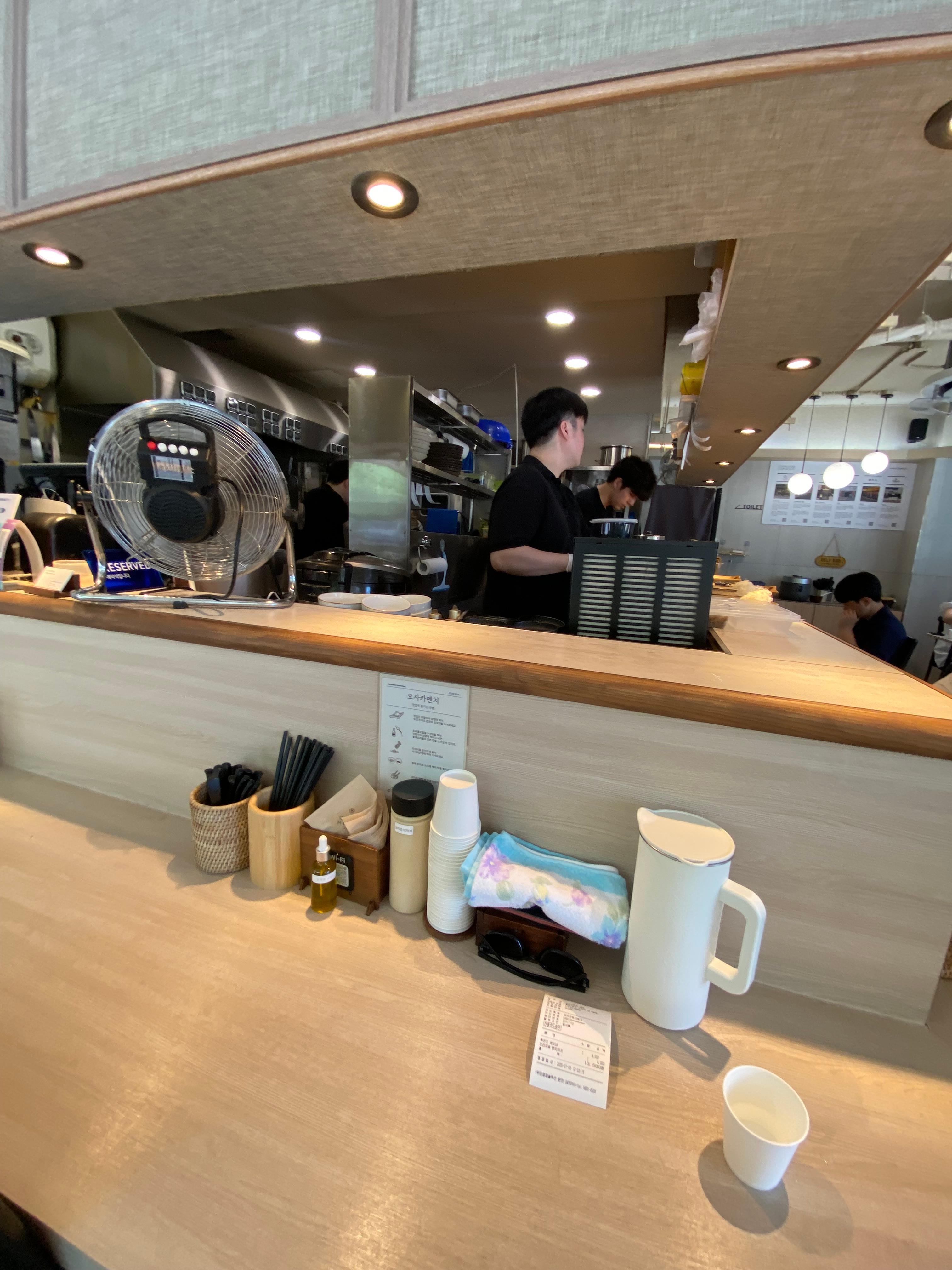 돈카츠로 유명한 맛집 소문이 난 곳이라 그런지 전 좌석 만석에 일인 좌석 겨우 한자리 남아있어