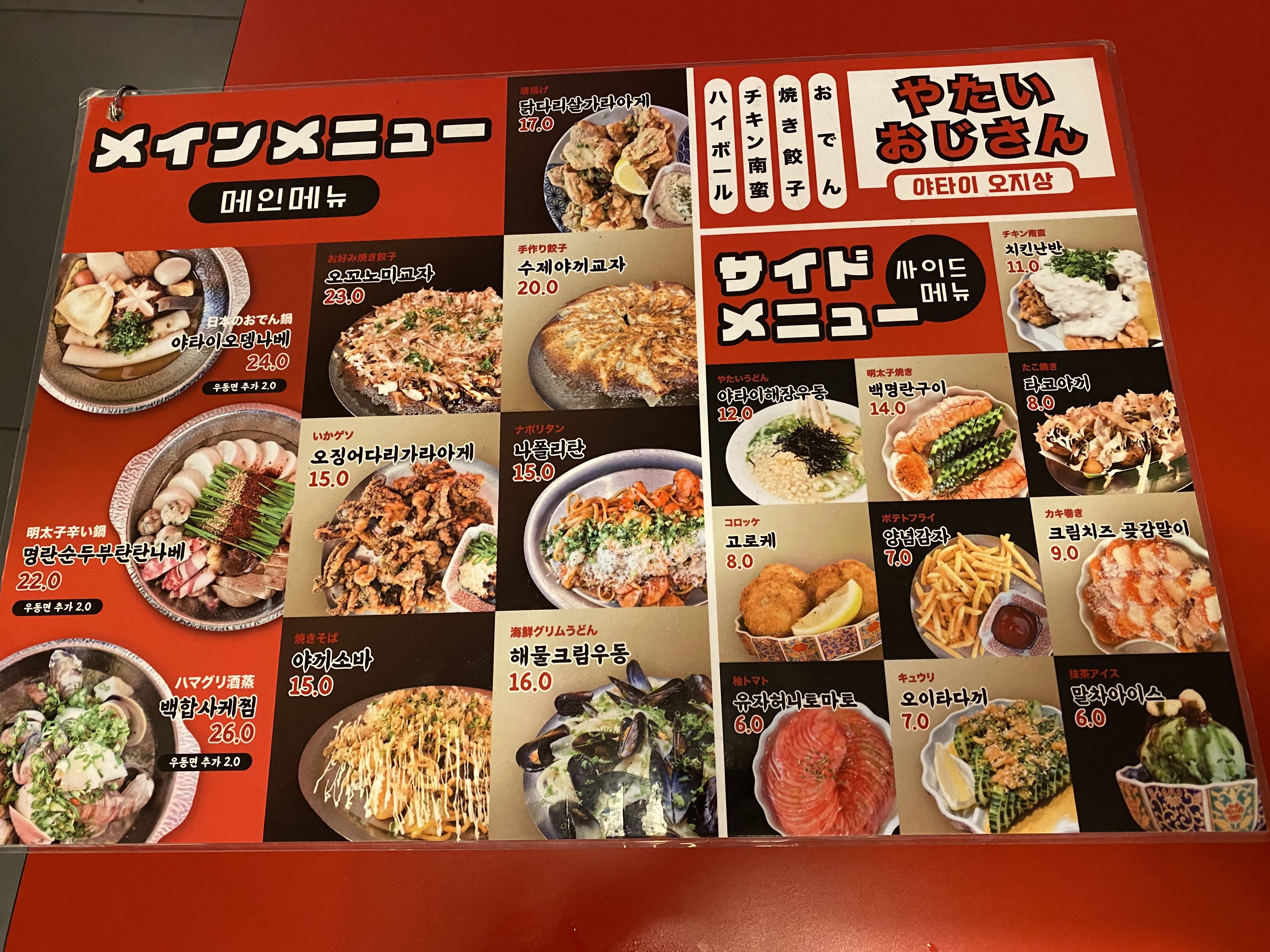 메뉴판도 일본어와 한글같이 표기가 되어 있습니다.