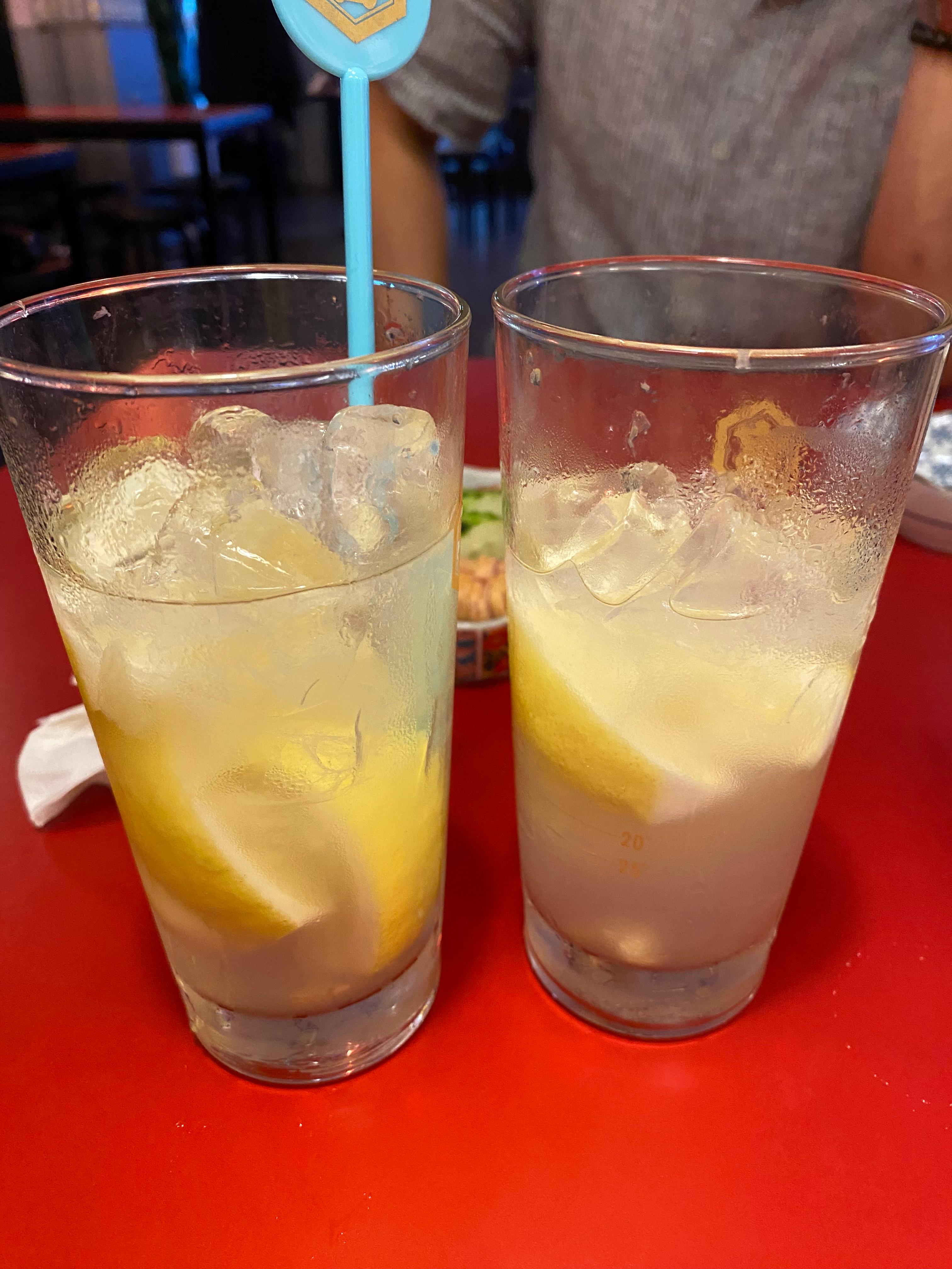 둘 다 건강 문제로 맥주를 사양하고 대체품으로 선택한 '야타이 레몬사와'가 나왔습니다.