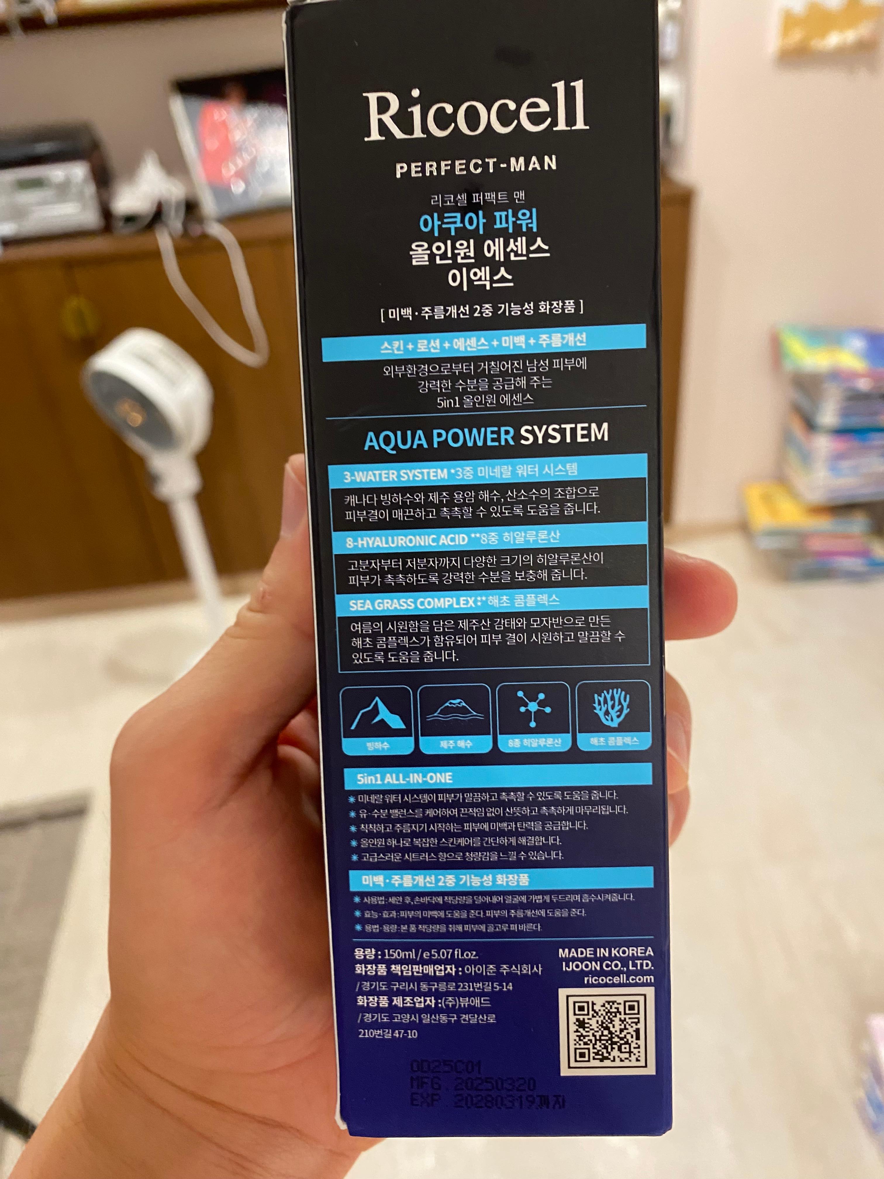 '리코셀 퍼펙트 맨 아쿠아 파워 올인원 에센스 150ml'입니다.