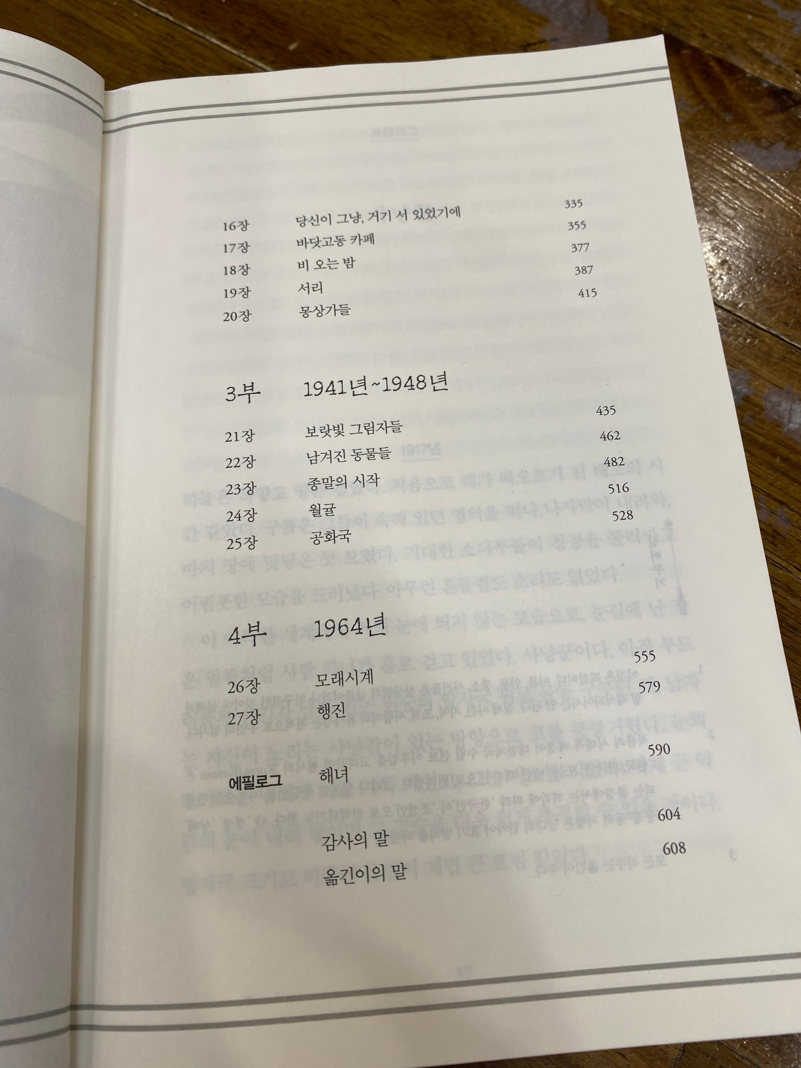 개인의 이야기 전개에 빠져있다 보면 시대 사도 무척 빠르게 흘러가 책 읽기에 흠뻑 빠질 수밖에 없습니다.