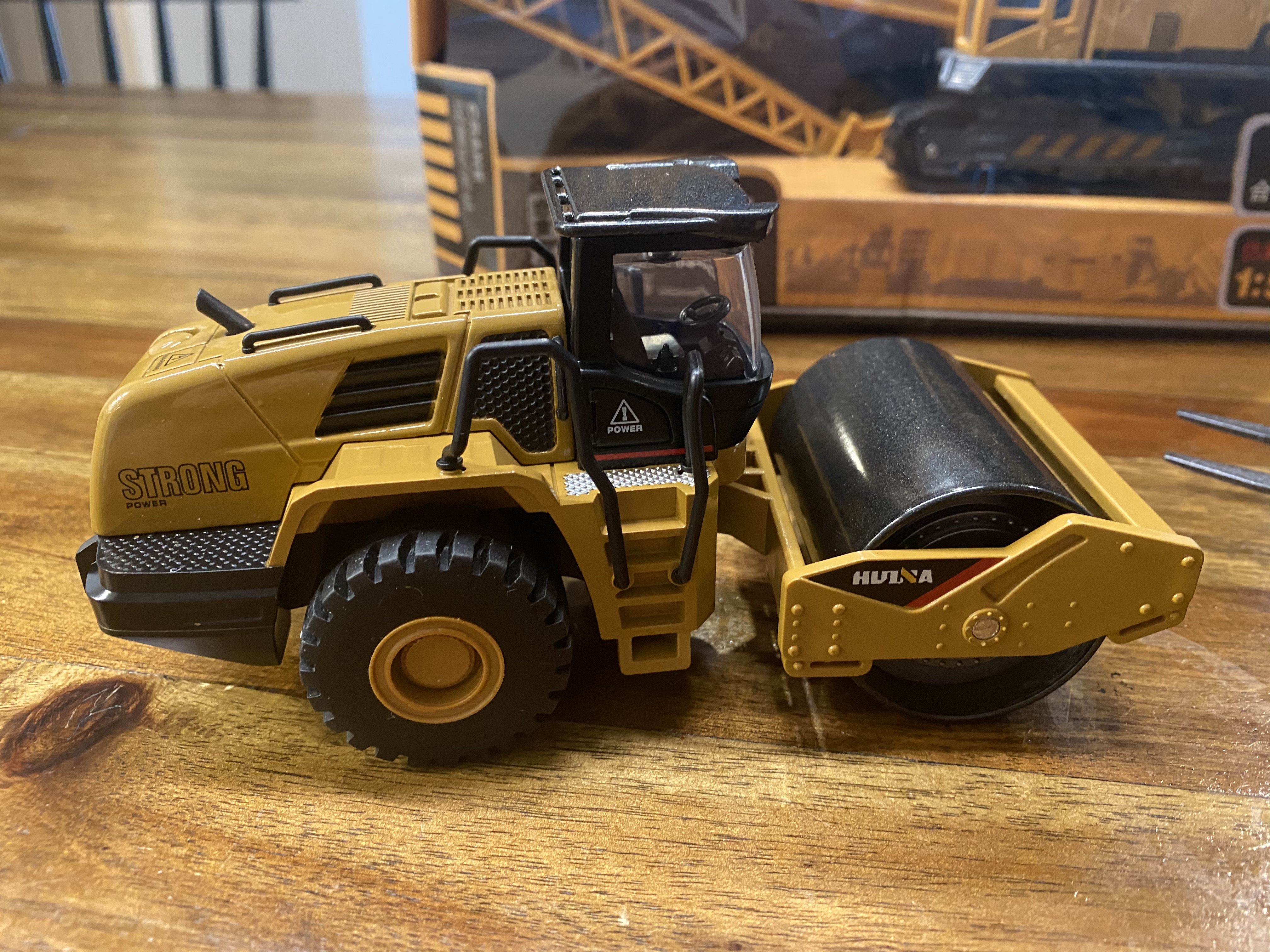 너무 싸서 그런지 겉 포장은 전혀 안 되어 있고 뽁뽁이 포장지로 둘둘 말려서 왔었답니다. 그런데 두둥~! 9천 원짜리가 묵직한 게 ~ 사진으로 봤을 땐 별 기대 없이 그냥 주문을 했었는데 지게차와 로드롤러가 묵직한 게 금속 제품으로 마감도 엄청 디테일하게 잘되어 있고 정말 득템했다는 생각이 들더군요.^^