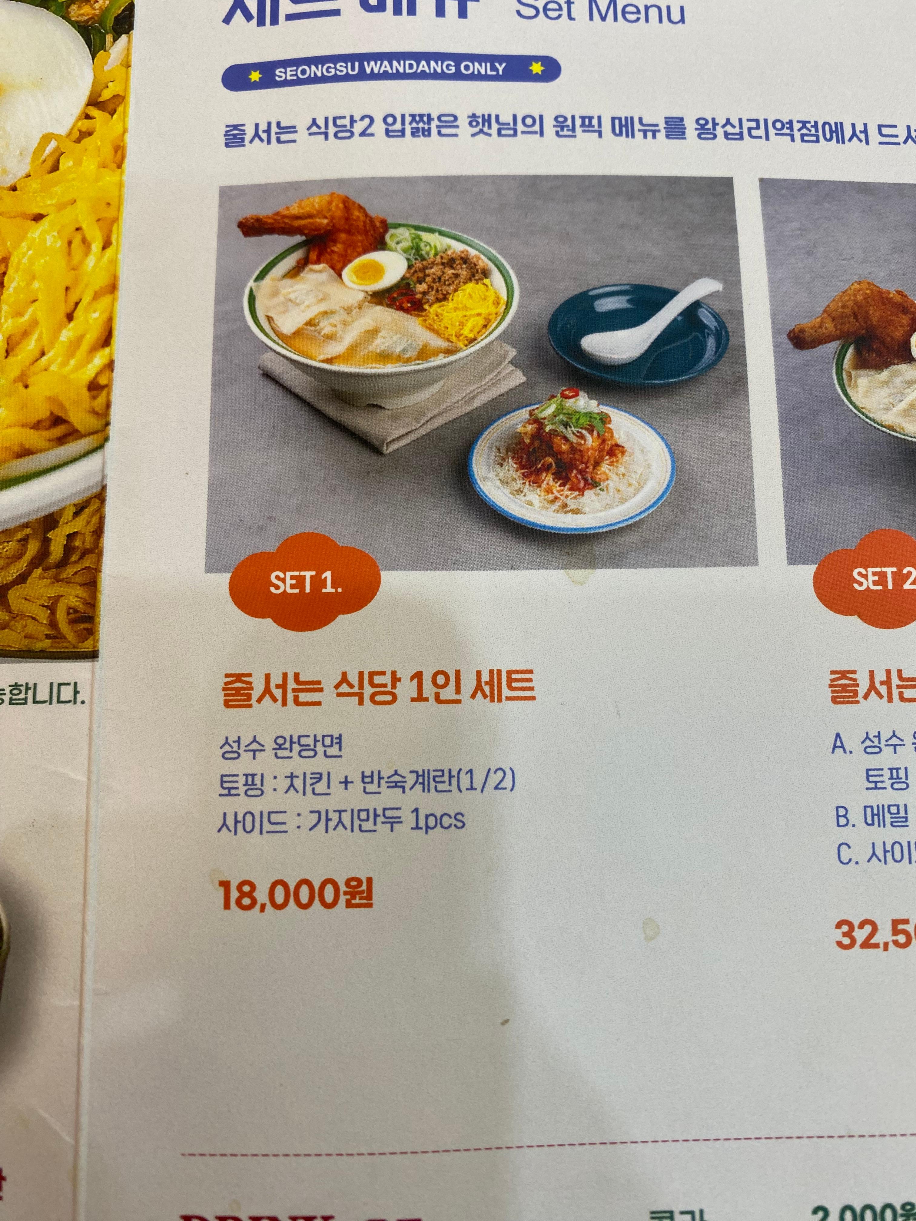 줄 서는 식당 1인 세트 메뉴 하나를 먼저 골랐습니다.