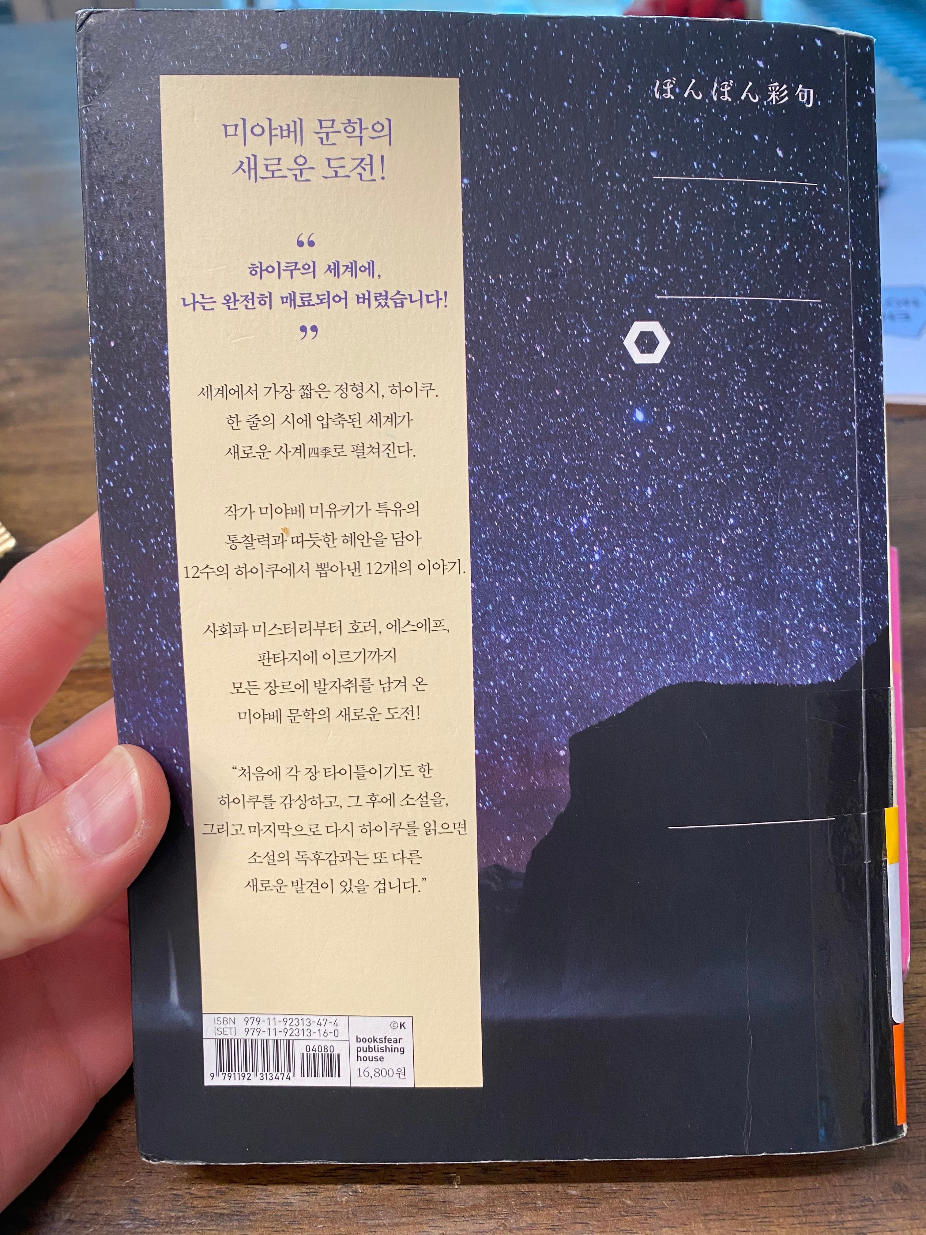 간만에 두꺼운 일본 작가의 소설책인데 하이쿠라는 정형시라니.....
