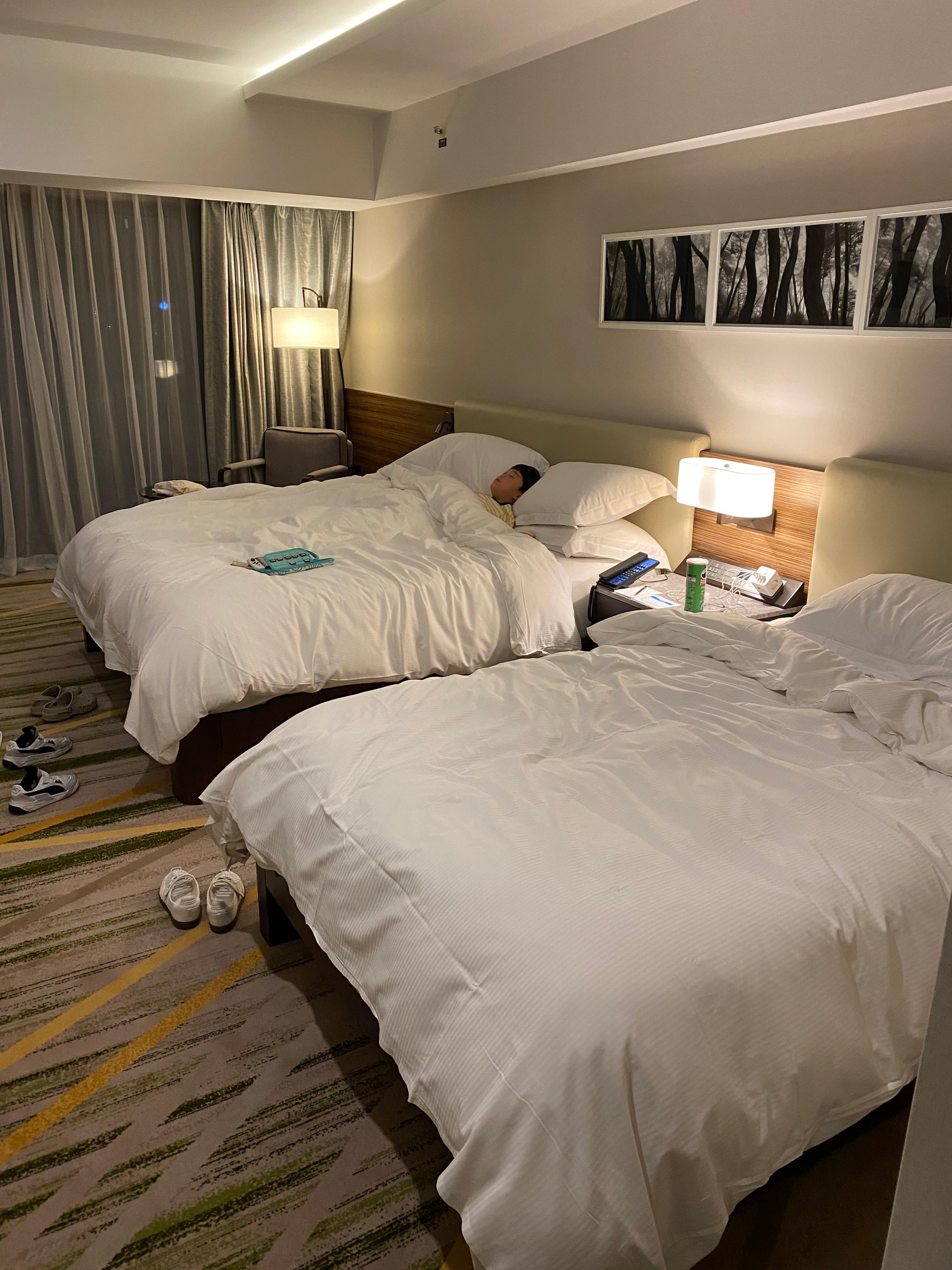 널따란 침대 두 개가 세 식구 아주 편안한 잠자리를 제공해 줬답니다.