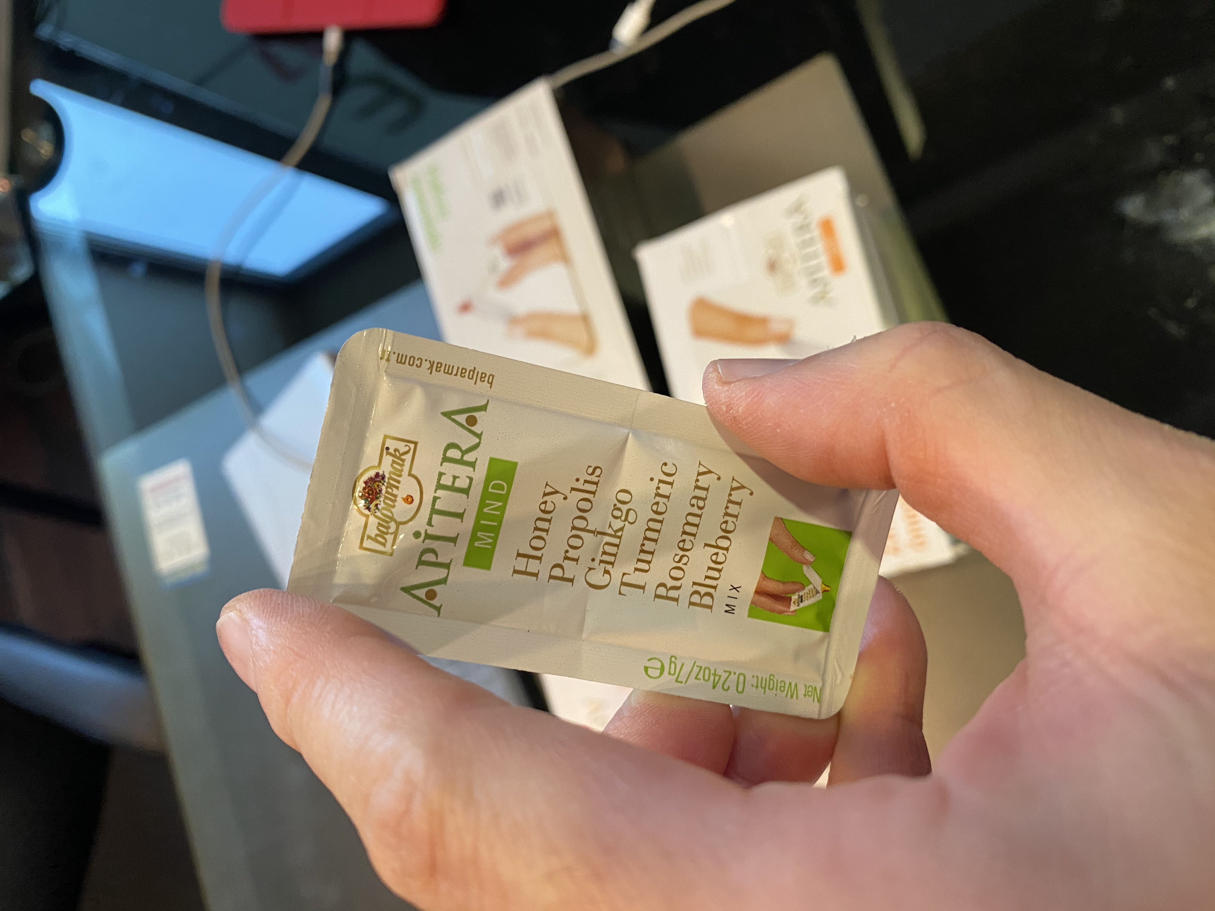 진즉에 다른 사이트에서 성분표를 좀 봤더라면 내가 좋아할 만한 맛으로만 시켰을 텐데.... 요 녹색은요~~ 마치 한약 맛 비스무리한 그런 맛이 납니다. 뭐... 한약도 제가 그리 싫어라 하는 게 아니라서~^^ 다음날 핑크 색깔과 그 담날 오렌지색 아피테라 맛을 다 봤는데요, 그냥 우리가 평소 먹던 아카시아 꿀, 토종 꿀 같은 그런 맛이 아닙니다. 각 색깔별 독특한 맛이 나는데 오렌지색은 홍삼 맛이 강하구요, 그나마 우리가 알고 있는 꿀맛과 젤로 비슷한 맛이 핑크색 아피테라 꿀이었습니다. 간편하게 차로도 마실 수 있는데요 지금까진 그냥 하루 한포 홍삼 먹듯이 아피테라 하고 있습니다.