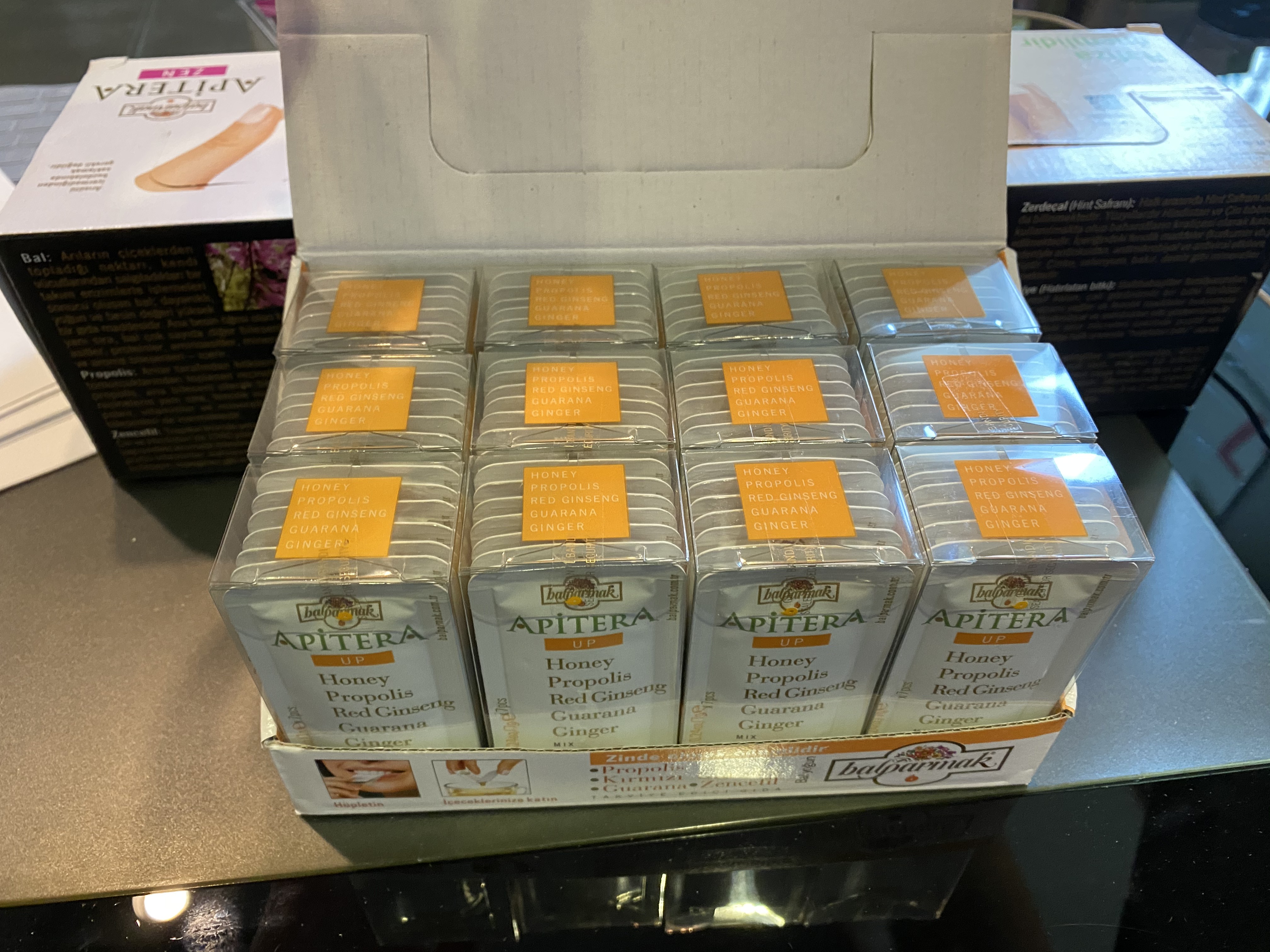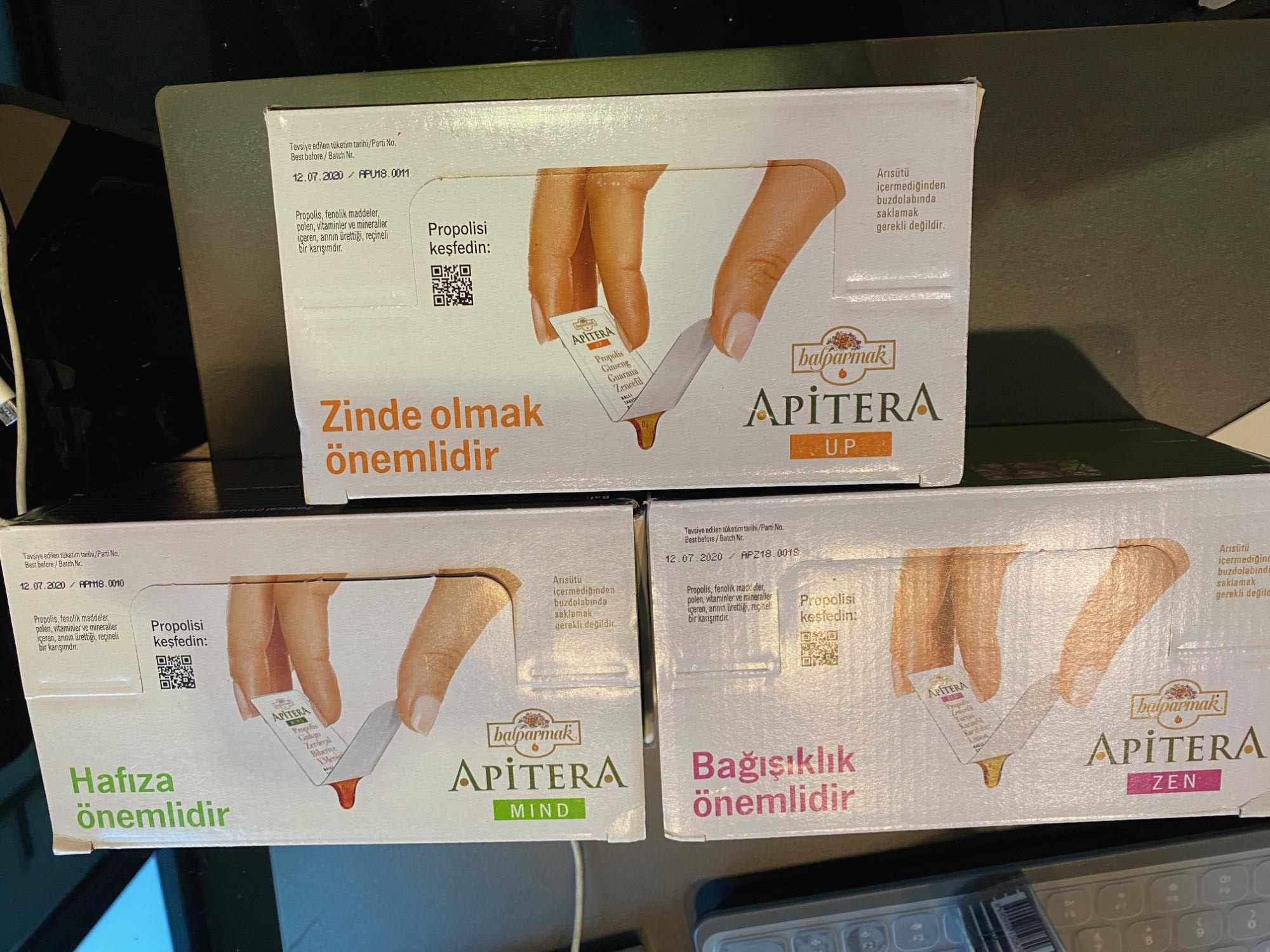 삼사일 지나고 나니 학원 앞에 택배 상자가 떡 하니 와있고 언박싱을 해보니 요렇게 색깔별 아피테라 꿀들이 도착~~!!