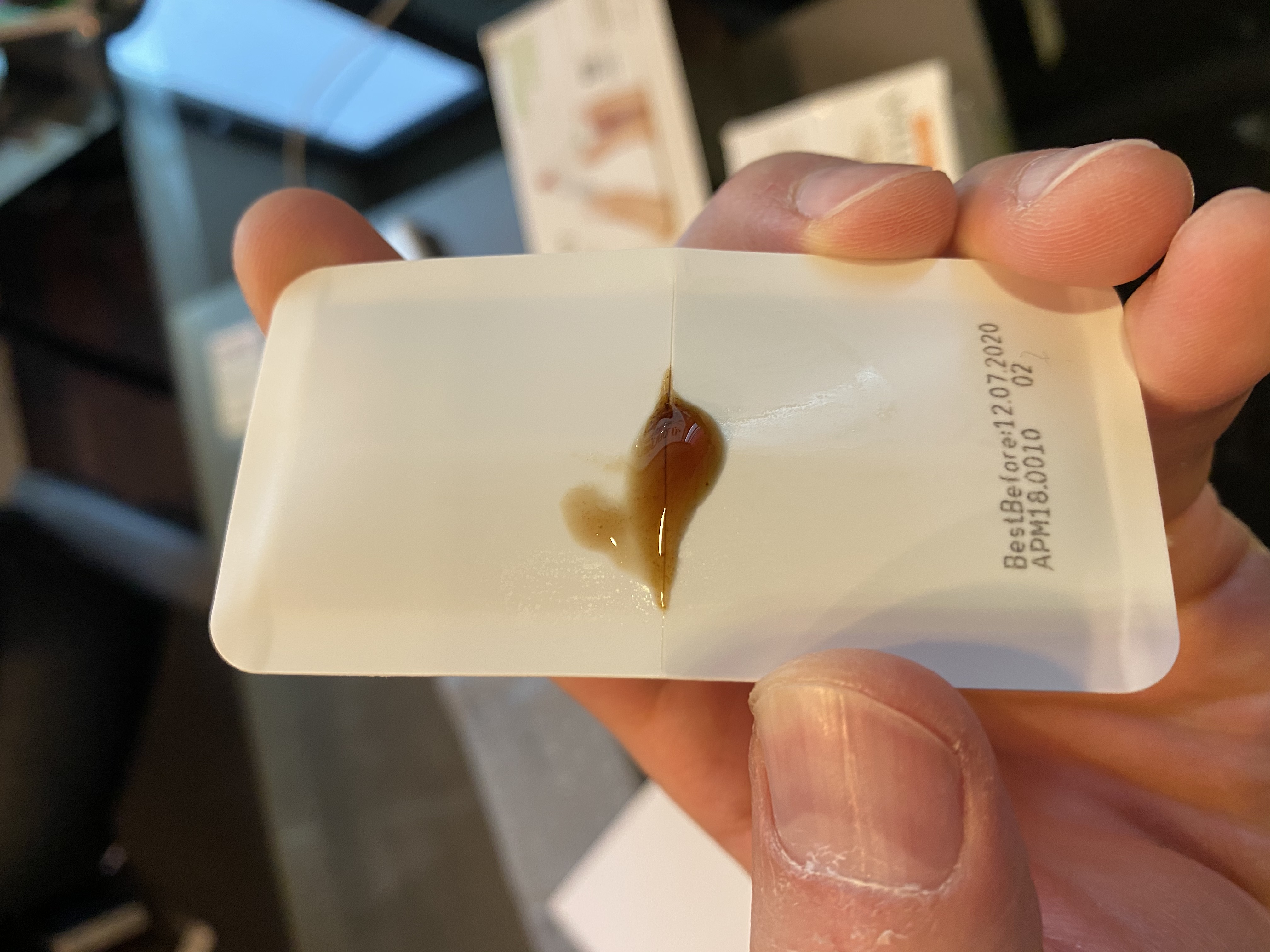 그중에 어떤 색깔을 먼저 먹어볼까 하다가 녹색 아피테라 꿀을 그냥 생으로 먹어 봤습니다. 요 아피테라 꿀은 먹기 좋게 1회분씩 포장이 되어 있는데 뒷면을 자세히 보면 가로로 줄이 살짝 가있습니다. 1회용을 손가락으로 위, 아래 잡아서 반으로 접어주면 좌측 사진과 같이 꿀이 스르륵~~ 나오게 된답니다.^^