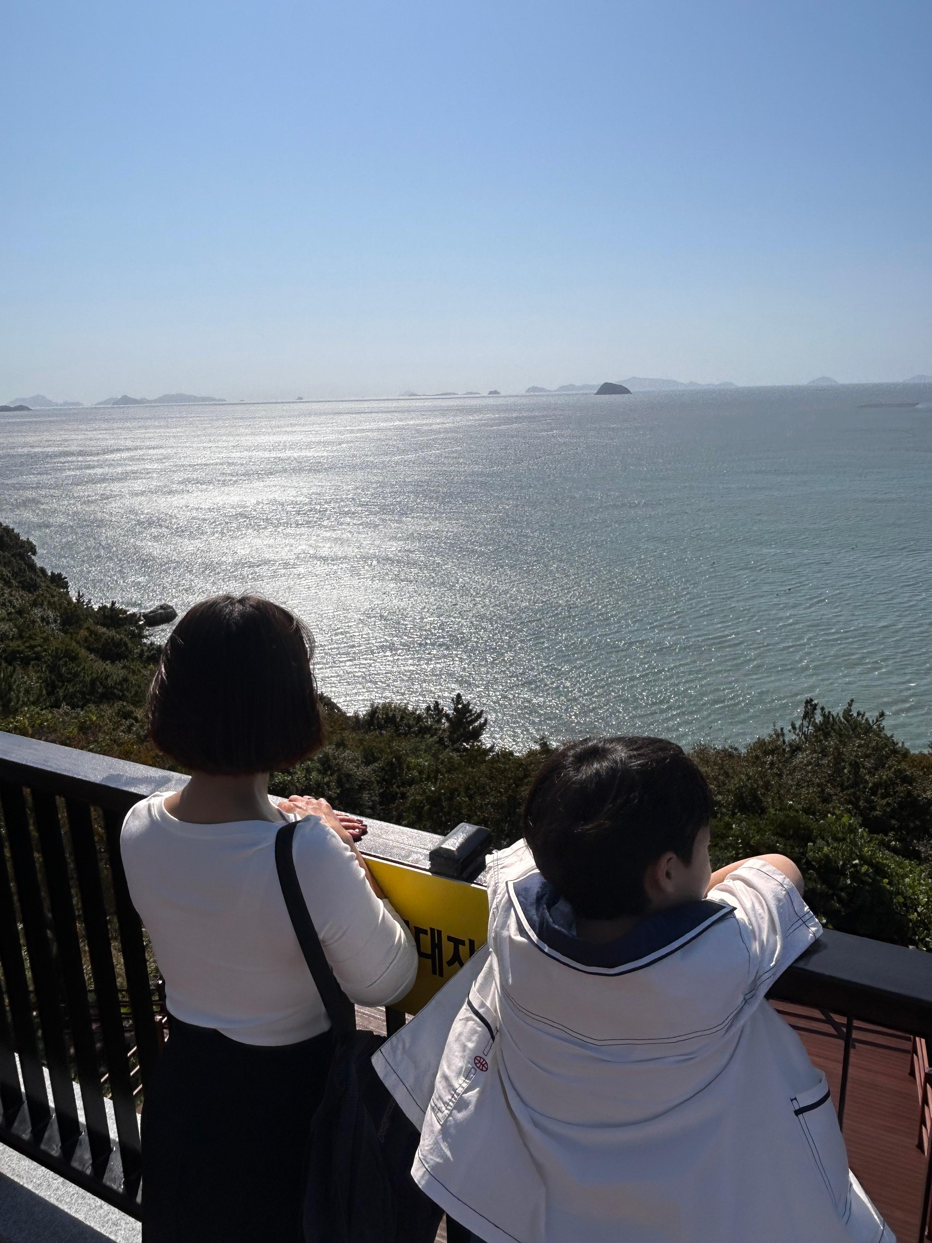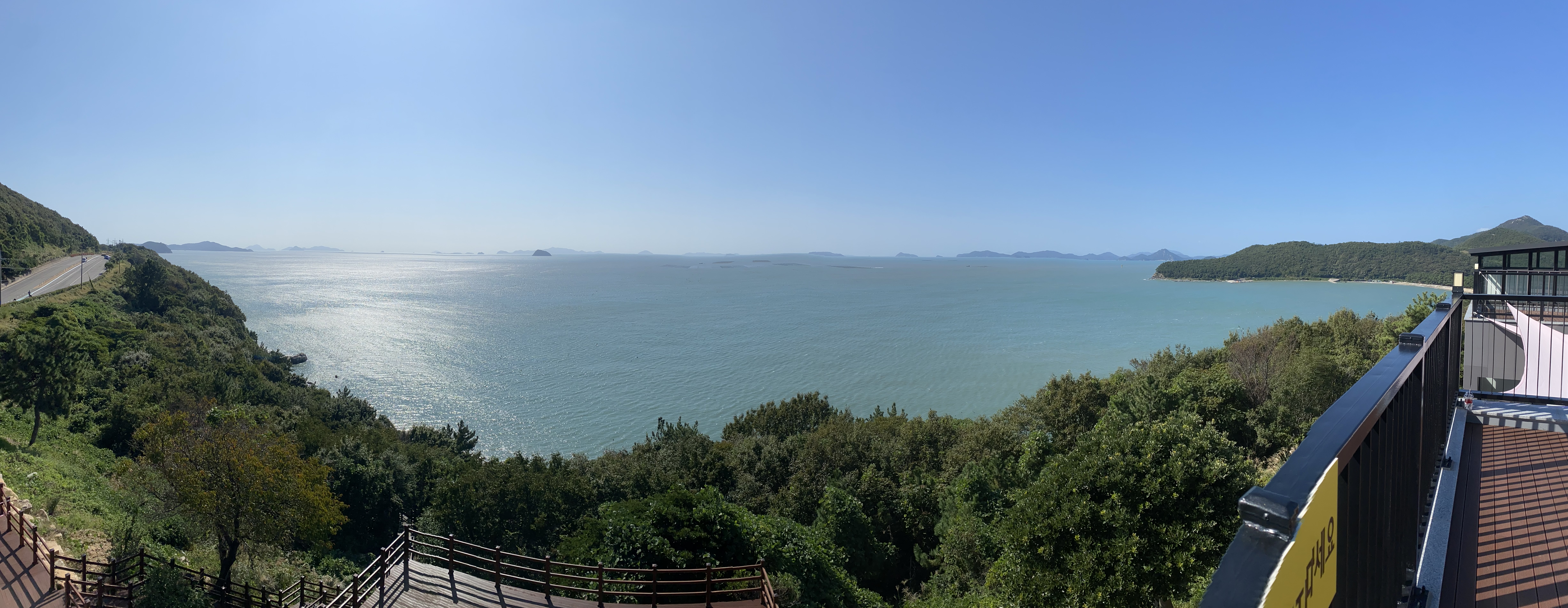 날씨는 쨍한 게 남해바다 뷰가 탁 트여 가슴이 뻥 뚫리는 게 너무 좋습니다.