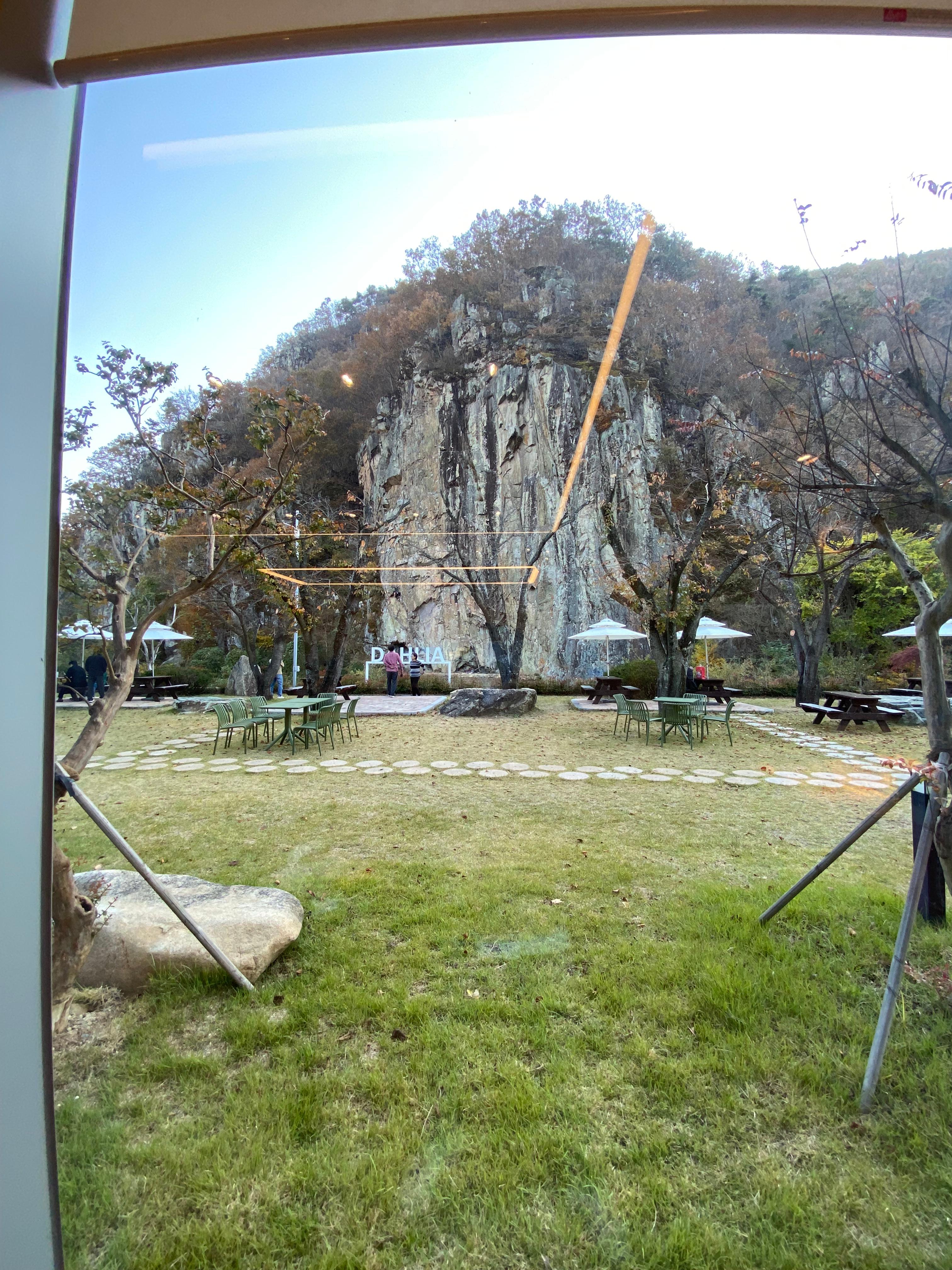 절벽을 마주 보고 있는 뷰가 펼쳐져 있습니다.