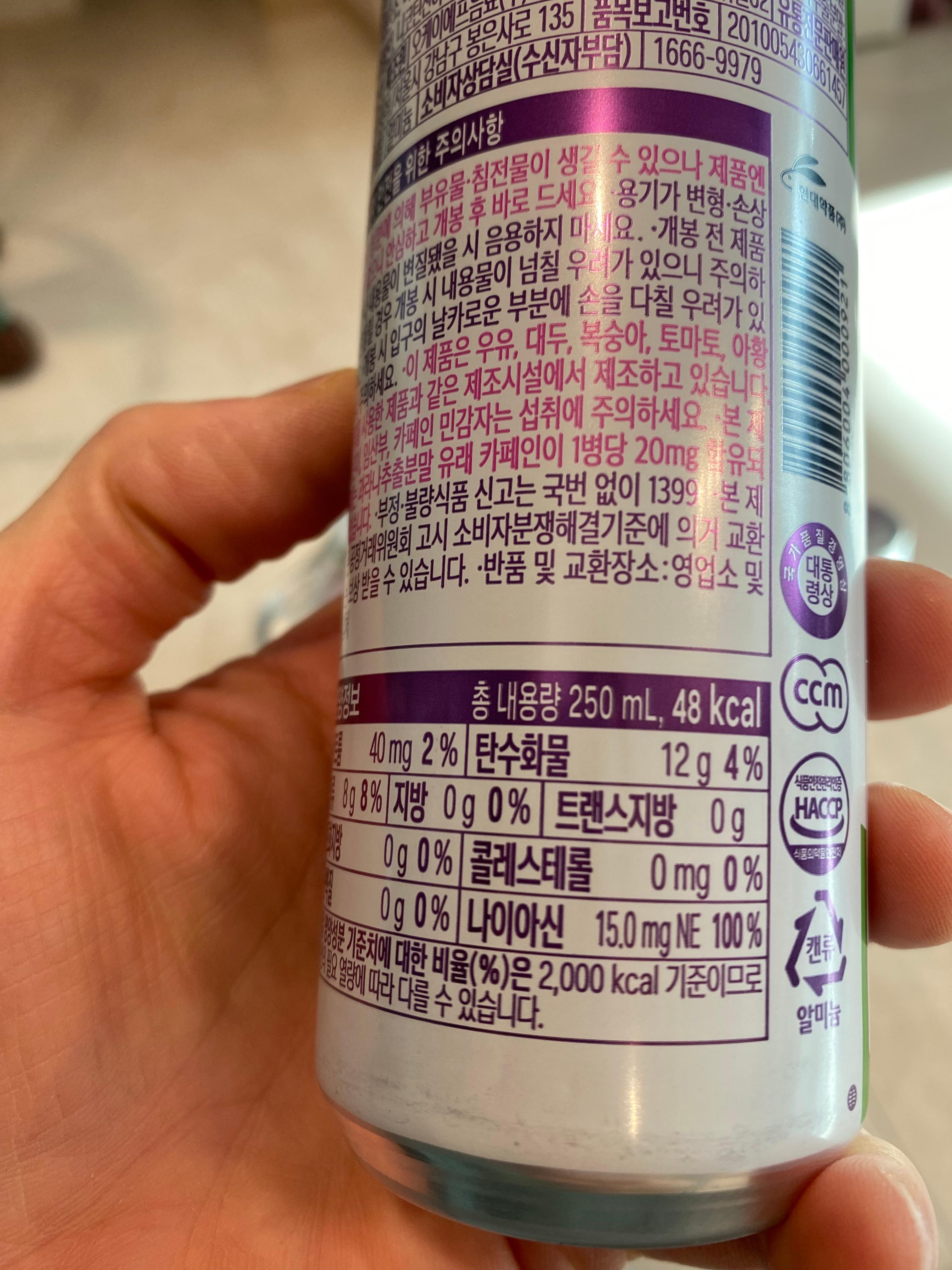 음료 성분을 확인해 보니 카페인이 아닌 타우린이 주성분으로 들어간 음료였습니다.