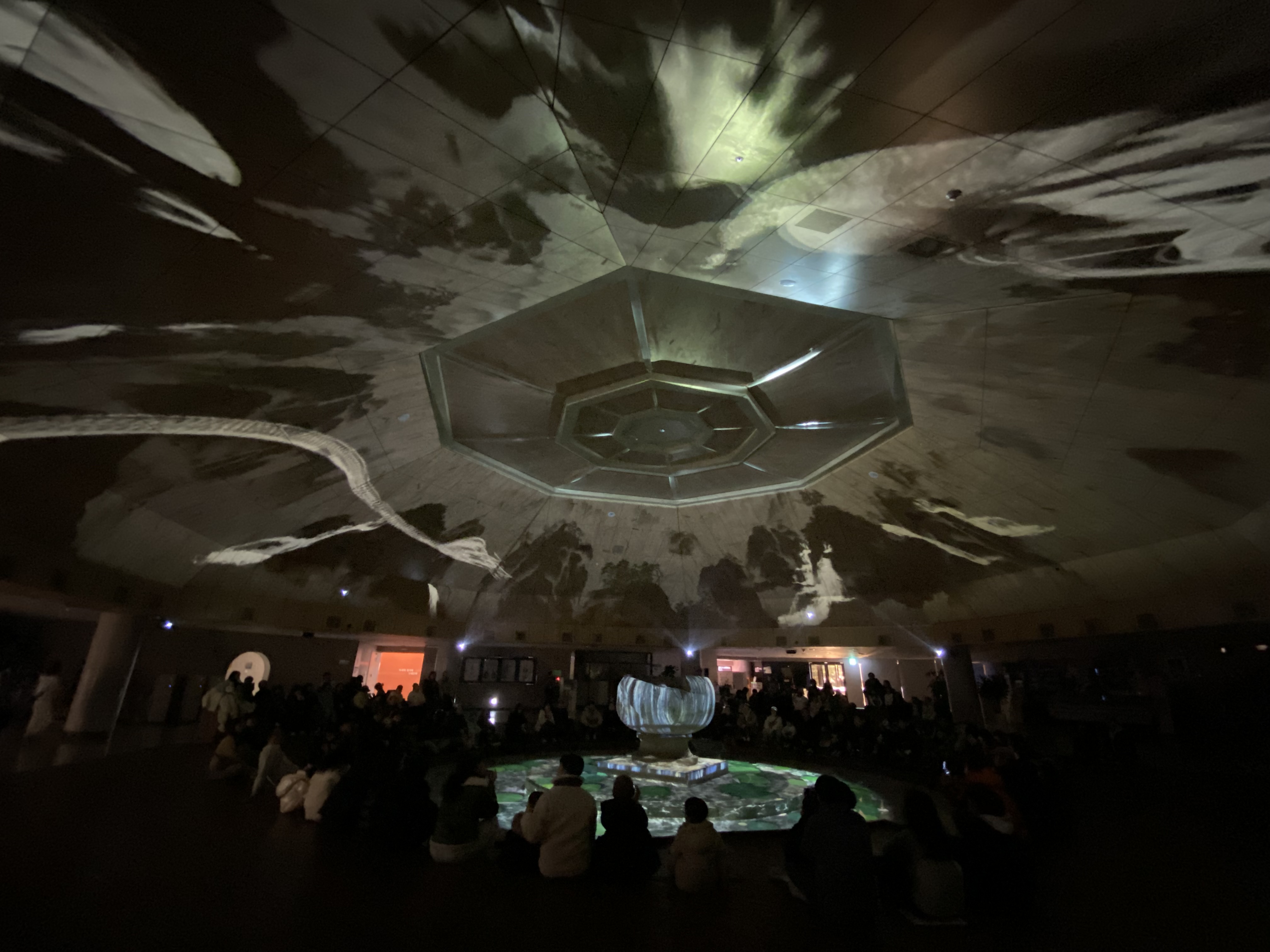 중앙홀 천장이 닫히면서 실내는 어두워지고요~~