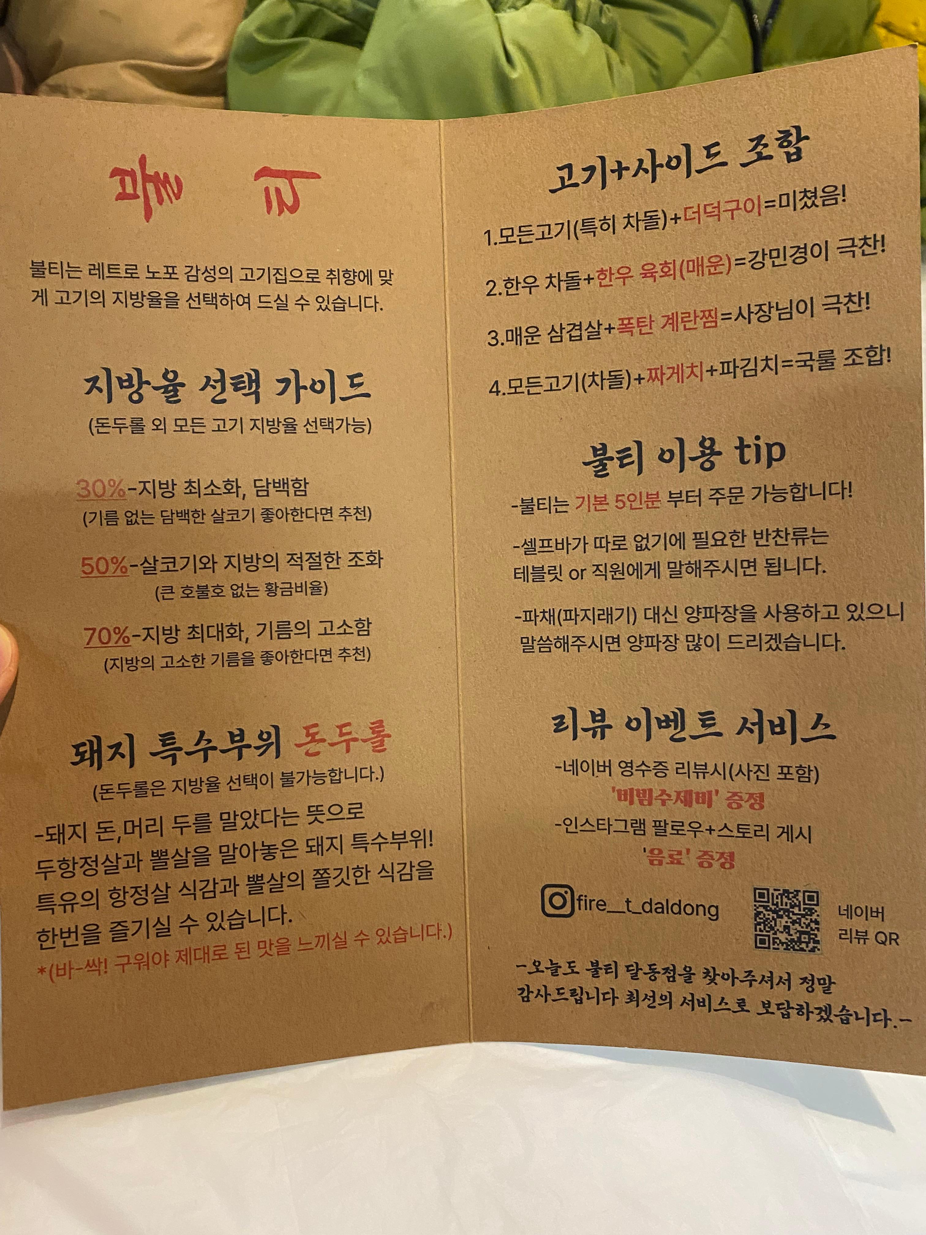 삼겹살 지방률을 선택할 수 있어서 특이한 불티 달동점이었는데요,