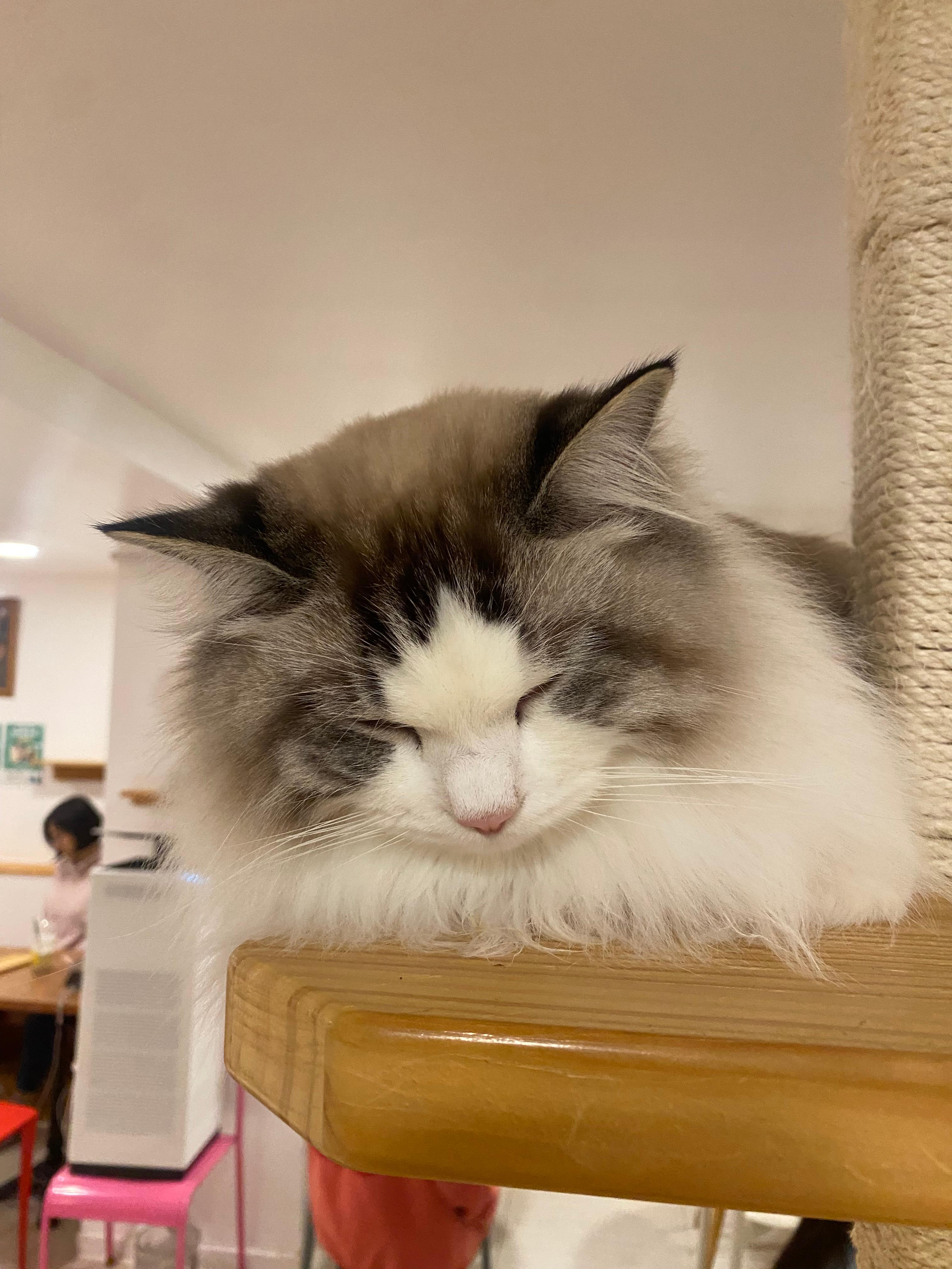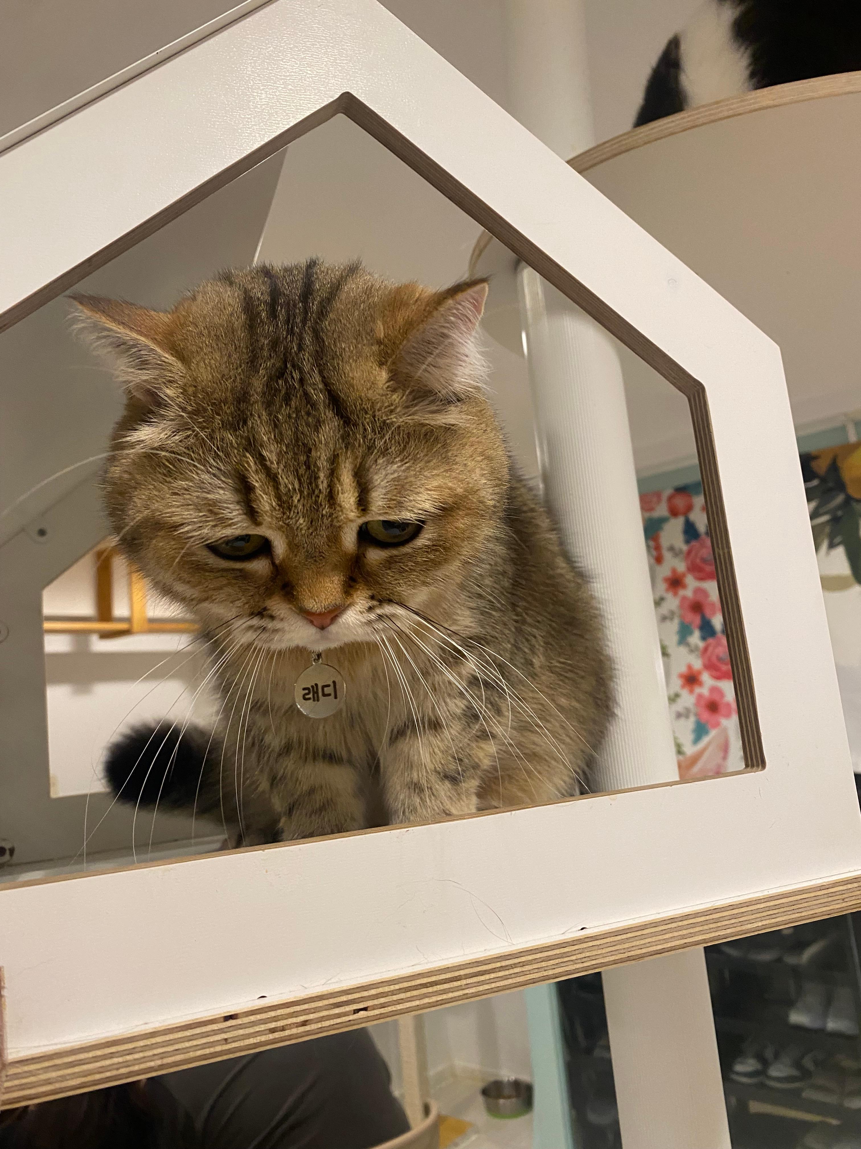 캣타워에서 얌전히 휴식을 취하고 있는 아이들을 먼저 공략해 봅니다.