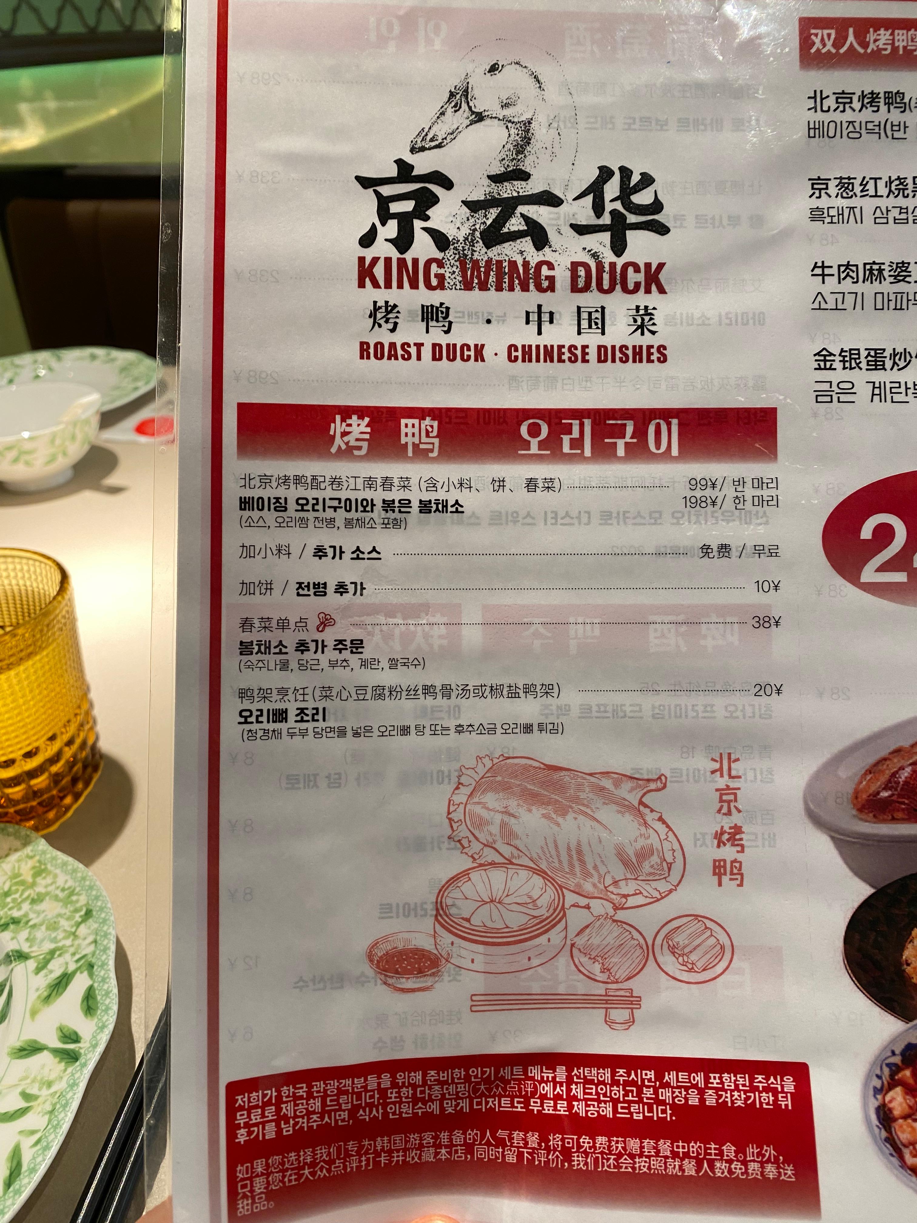'京云华(징윈화) King Wing Duck' 식당 되겠습니다.