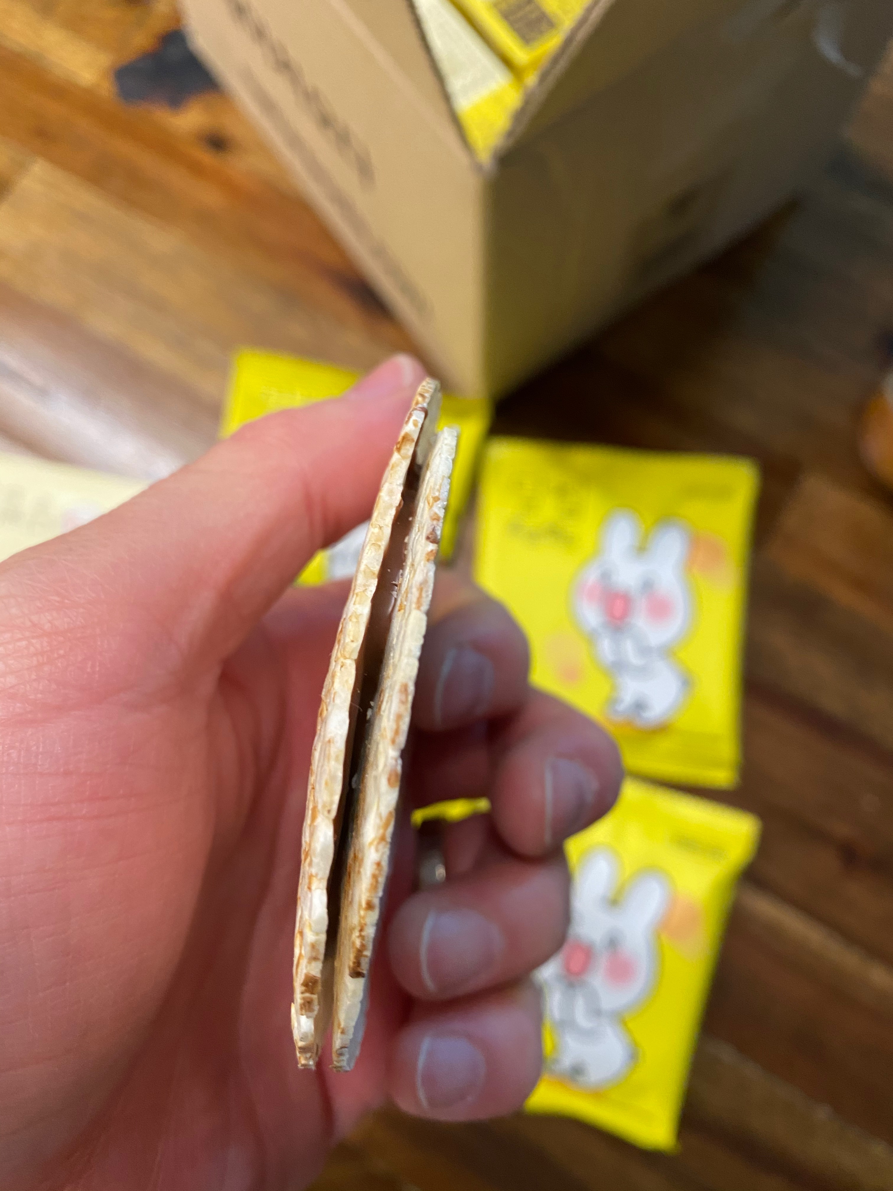 짠~~ 뜯어보니 쌀 과자 샌드가 딱! 중간에 초코가 딱!