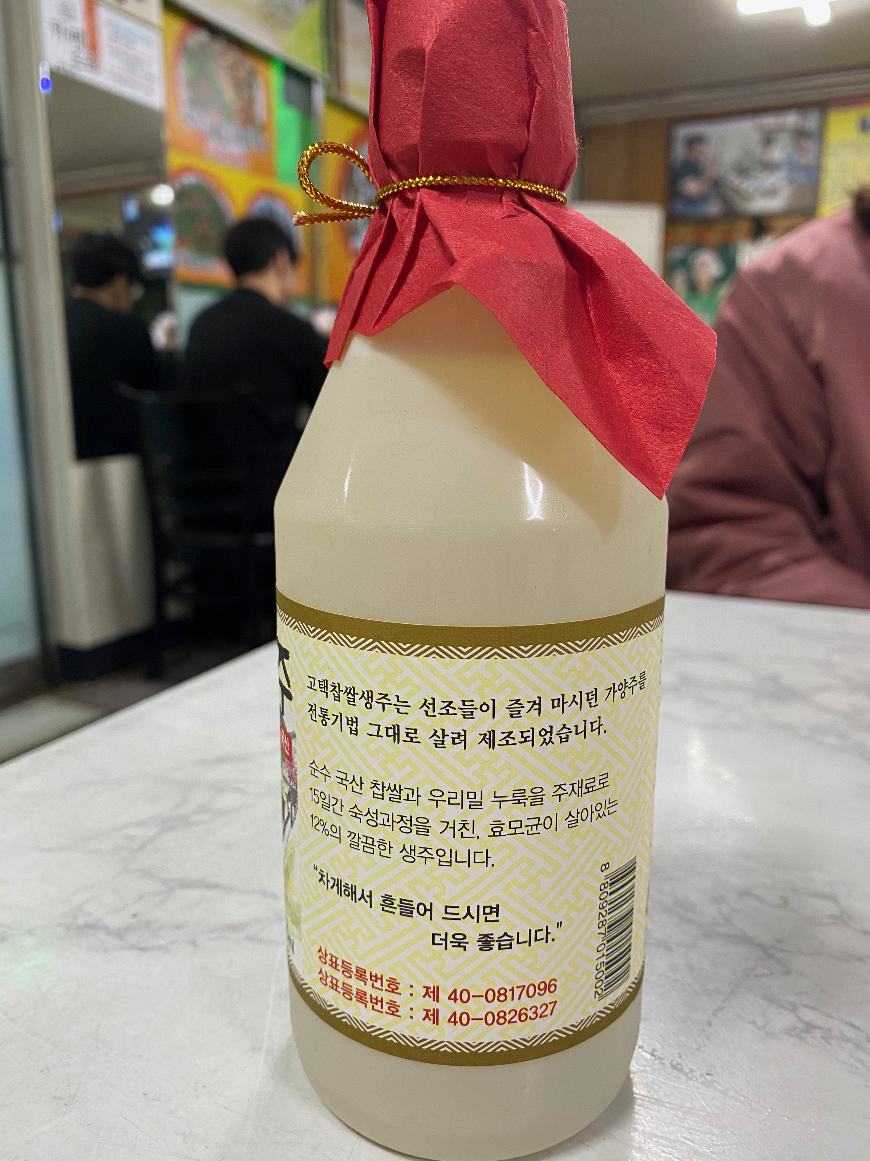 미향식당 맛집 소개에 이은 사이드 스토리로 벌교 꼬막을 먹는데 그냥 먹을 순 없으니 당연히 알콜이 한잔 들어가야겠쥬? 평소에 해당 지역 막걸리는 반드시 마셔보는 얼리어답터 성격에 이 집에서 판매하는 막걸리가 뭐가 있나 냉장고를 들춰보다 난생 첨 접하는 술을 발견하게 되었습니다. 오늘 소개할 바로 '고택 찹쌀생주' 라는 술인데요 겉에 빨간색 포장지가 이거 엄청 맛나니 잡숫고 가바~ 하는 듯한 유혹의 손길을 뻗치고 있는 게 아니겠습니까? 얼른 한 병 꺼내와서 오픈을 해봤습니다.