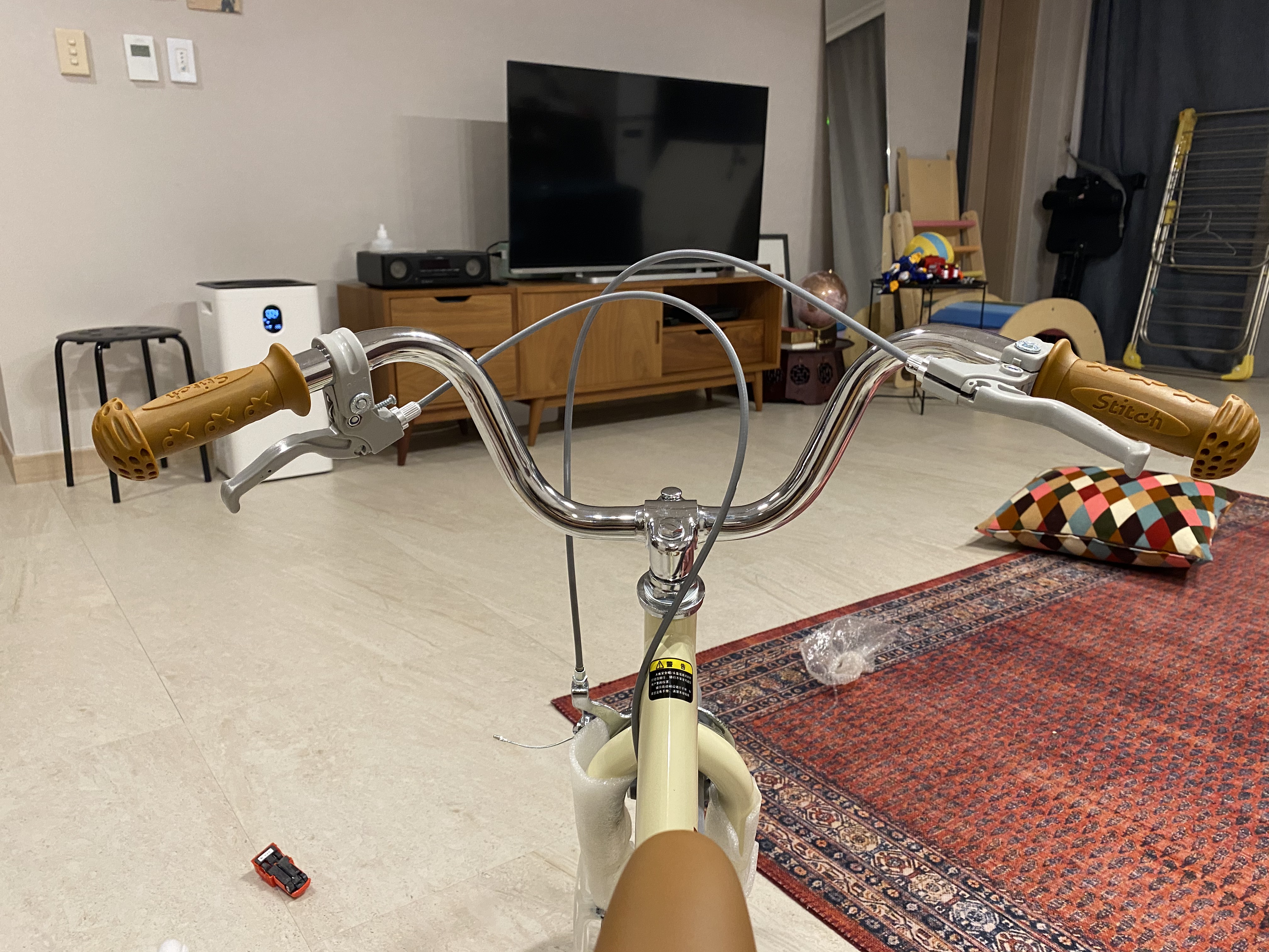 사진보다 실물이 훨씬 이쁘고 심플하고 기대 이상으로 자전거가 무척 튼튼하고 마감이 좋아서 정말 맘에 드는 자전거입니다. 다만 아들 손이 작아서 그런지 브레이크 잡는 게 많이 힘들어하네요. 손이 아프다고ㅠㅠ 그래도 요거 타면서 부엌도 가고 안방에도 가고 거실에서도 뱅뱅 돌고 ~ㅋㅋ 이번 주말 제발 비가 안 와서 아들이 첫 신고식을 했으면 하는 간절한 바람입니다. 가격은 배송비까지 포함해서 총 105,000원 정도 들었습니다. 이 정도면 알리보다 최저가이고 국내 사이트 최저가 맞을 겁니다. 아이 자전거를 고민 중인 엄빠들에게 강력 추천해 봅니다.