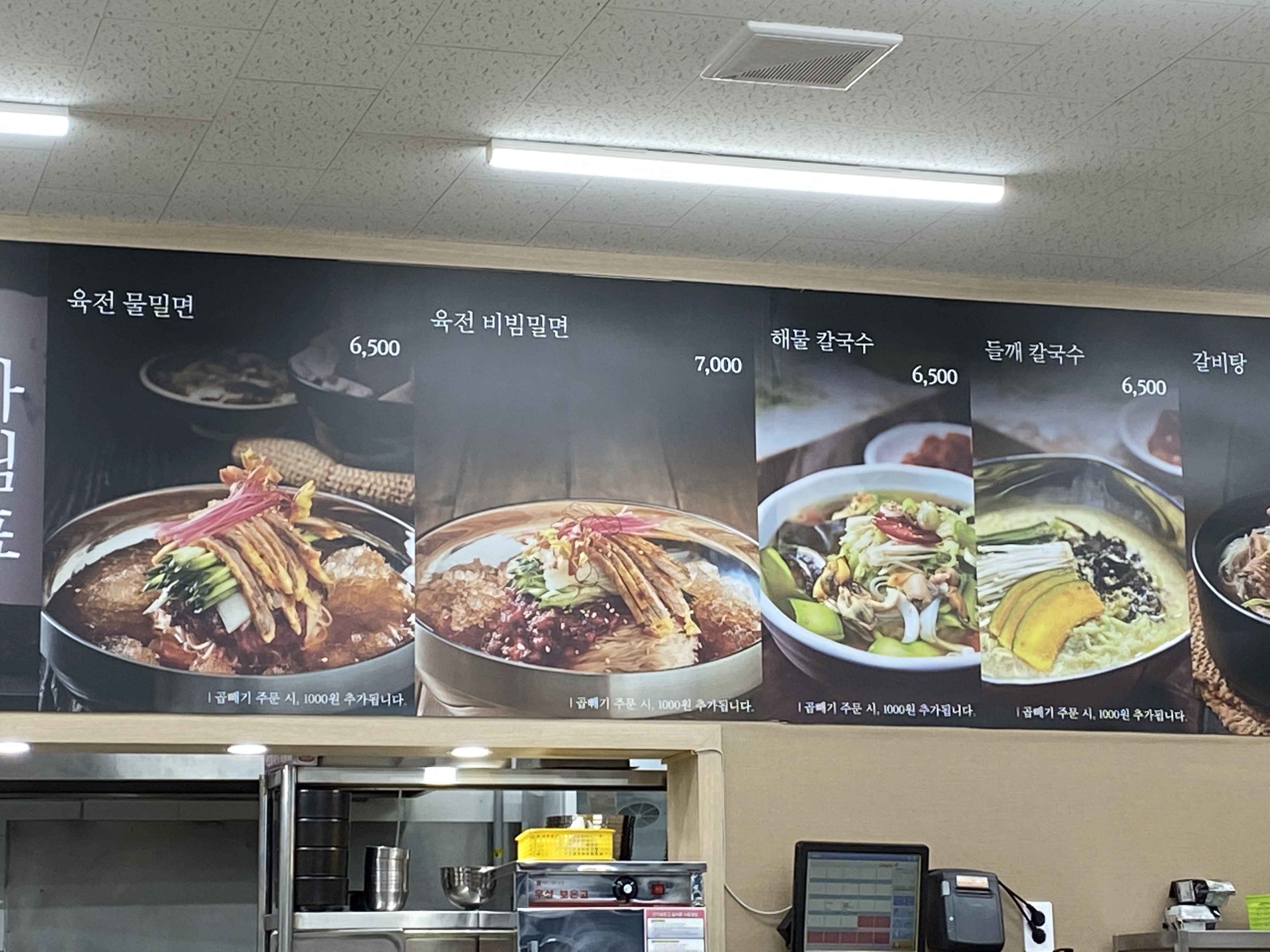 고메밀면... 무슨 의미일까 궁금하긴 했었습니다. 맛도 그렇고요. 가보니 고구마와 메밀을 이용해 만든 밀면이었습니다. 전 냉밀, 와이프님은 비빔밀, 그리고 아들을 위해 만두 한 판~ 요렇게 주문을 했습니다.