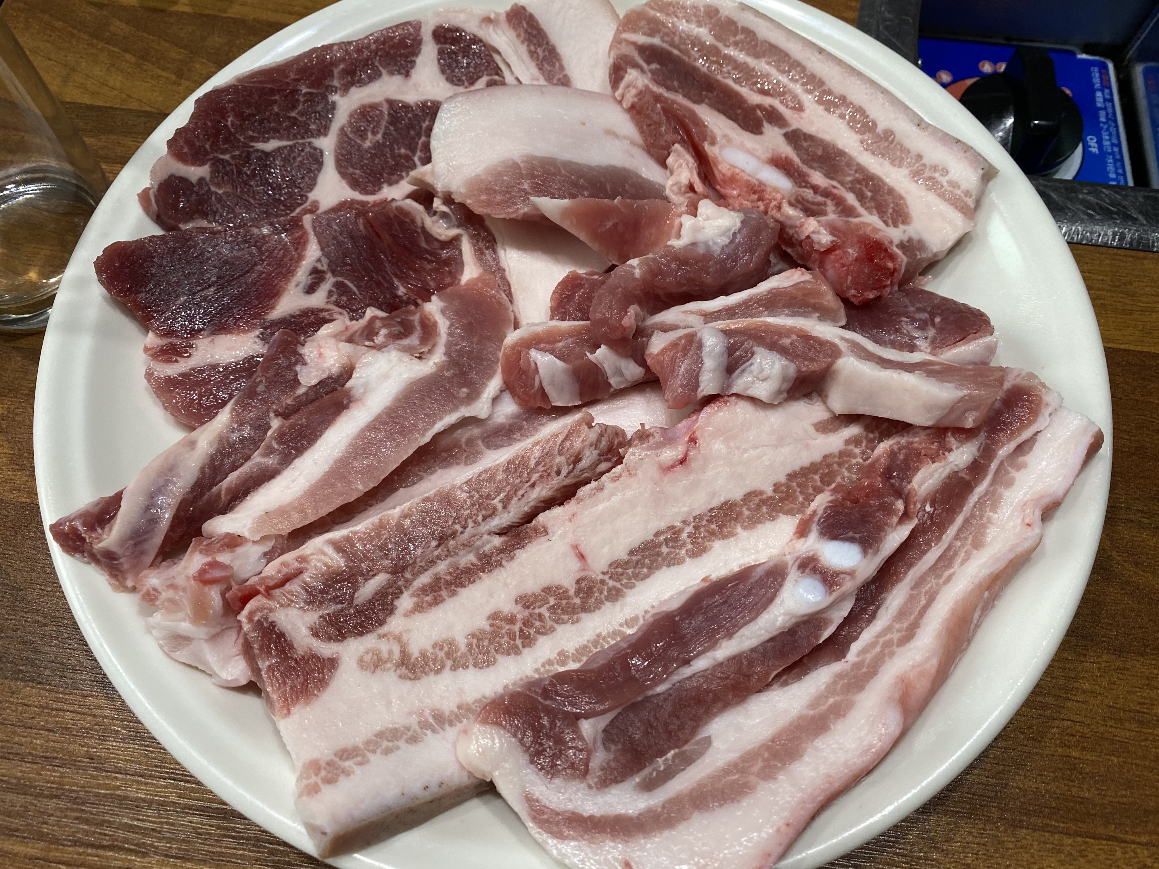1인분 지리산 흑돼지가 150g ~ 캬~~ 넉넉한 시골 인심에 3인분을 주문했습니다. 삼겹과 목살 부위가 섞어 나왔는데 우와~~ 그냥 딱 봐도 알겠더군요. 싱싱한 상태를~ 맛은 어떨지~~