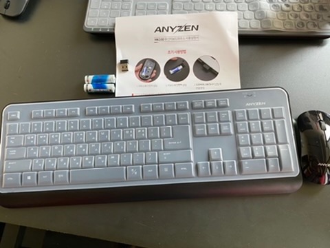 학원에서 사용하는 컴퓨터에 너무 많은 선들이 복잡하게 물려있어서 마우스와 키보드는 진작에 블루투스 세트로 선없는 환경에서 잘 사용하고 있었는데 어느 날 갑자기 작동이 안 되면서 둘이 같이 사망을 하고 말았답니다. 그래서 요래조래 알아보니 요즘은 가성비 세트로 사무용 마우스&키보드가 많이 나와 있더군요. 만 원 정도부터 시작해서 비싼 건 십만 원 후반대까지~~ 싼 맛에 사용하면 렉 걸려서 뒷목잡는 경우가 자주 발생한다고 해서 넘 싼 넘은 패스하고 2만 원대에서 얼추 알아보다 맘에 드는 제품을 구입하게 되었습니다. anyzen 블루투스 마우스&키보드 세트인데요 쿠팡에서 익일 배송으로 받았습니다. 이제껏 사용해봤던 제품들은 다들 aaa 사이즈의 배터리를 사용했는데 요 제품은 aa 사이즈 배터리가 들어가고 넘 싸서 그런가 배터리 기본 옵션이 아니더라고요. 그래서 4개의 aa 사이즈 배터리를 구입해서 사용하게 되었습니다.