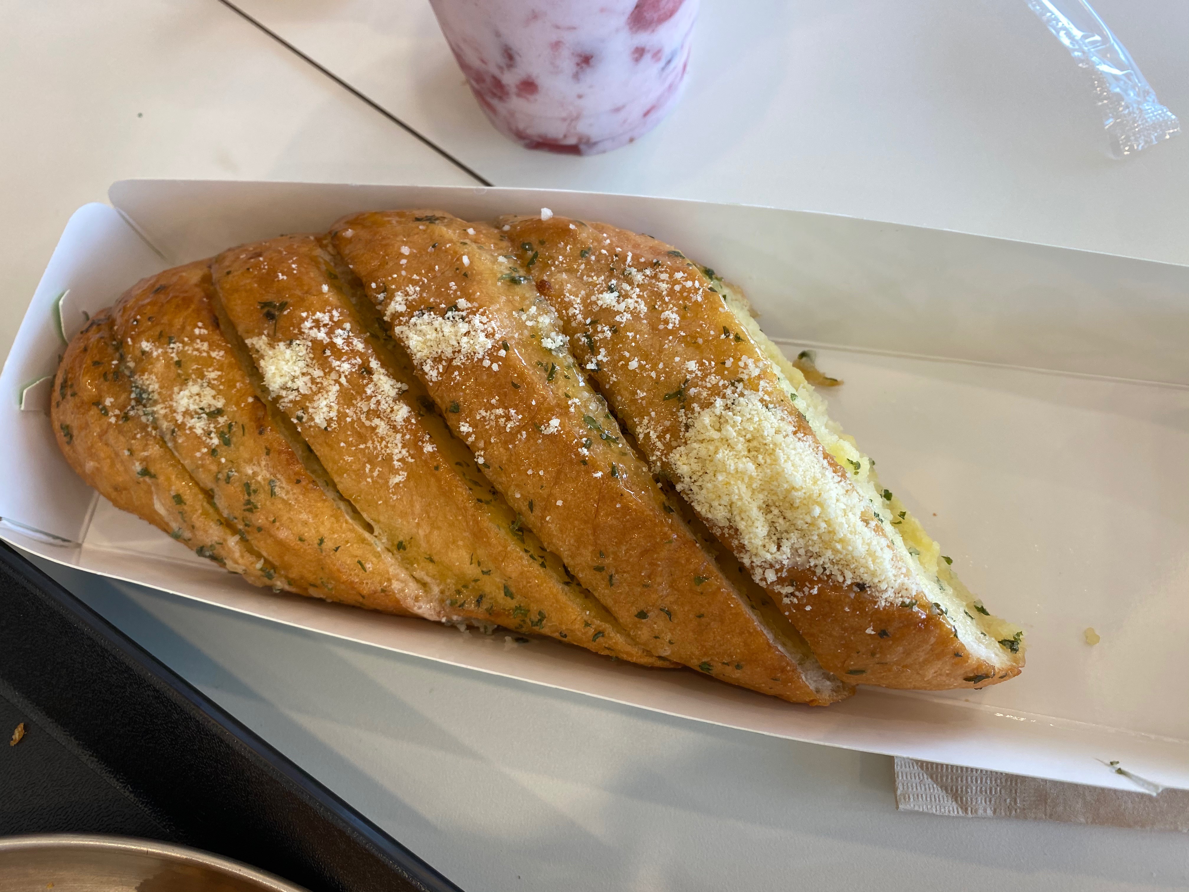 햐~~ 이거 이거~~ 빵 먹다 보니 사진을.... 다 뜯어 먹고 나서 남는 걸 촬영했습니다ㅠㅠ 좌측은 무슨 파니니 계열의 빵이었는데.... 도저히 기억이... 우측은 아들이 좋아하는 마늘빵이고요~