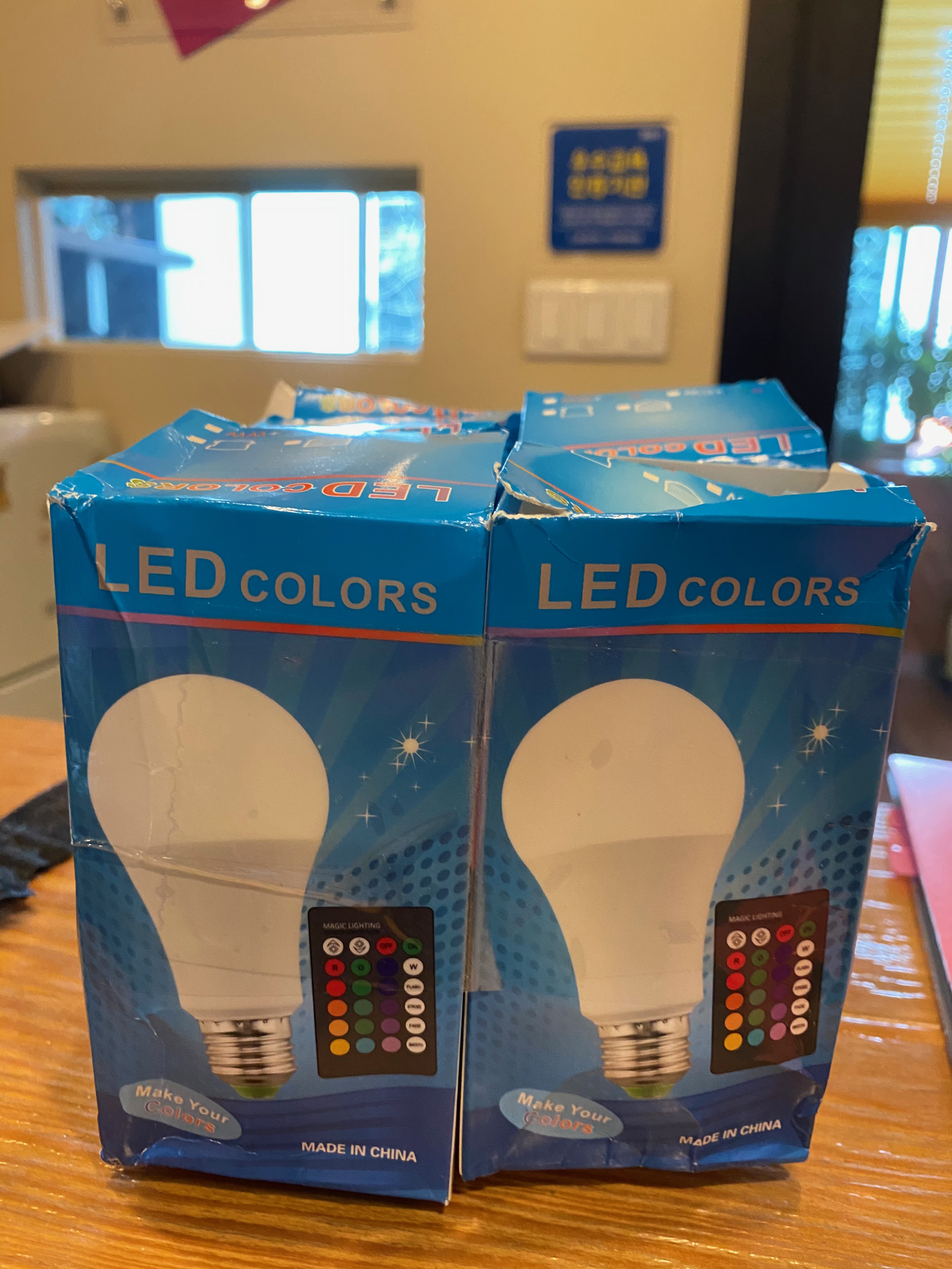 개당 3.32달러에 총 여섯개를 구입했는데 리모컨이 각 한개씩 다 들어가 있더군요ㅠㅠ 그래서 덜컥 겁이 났습니다. 이거이거 여섯개 조명 각자 리모콘을 사용해서 색조절을 해야하 하는게 아닌지..... 수은 전지는 미포함이라 따로 사셔야 해요^^ 전구랑 리모콘이 셋뚜로~ 딱~~ 여섯개!!! 조명 바꾸기전 기존 웜화이트 led 12w 조명을 설치 했었습니다.
