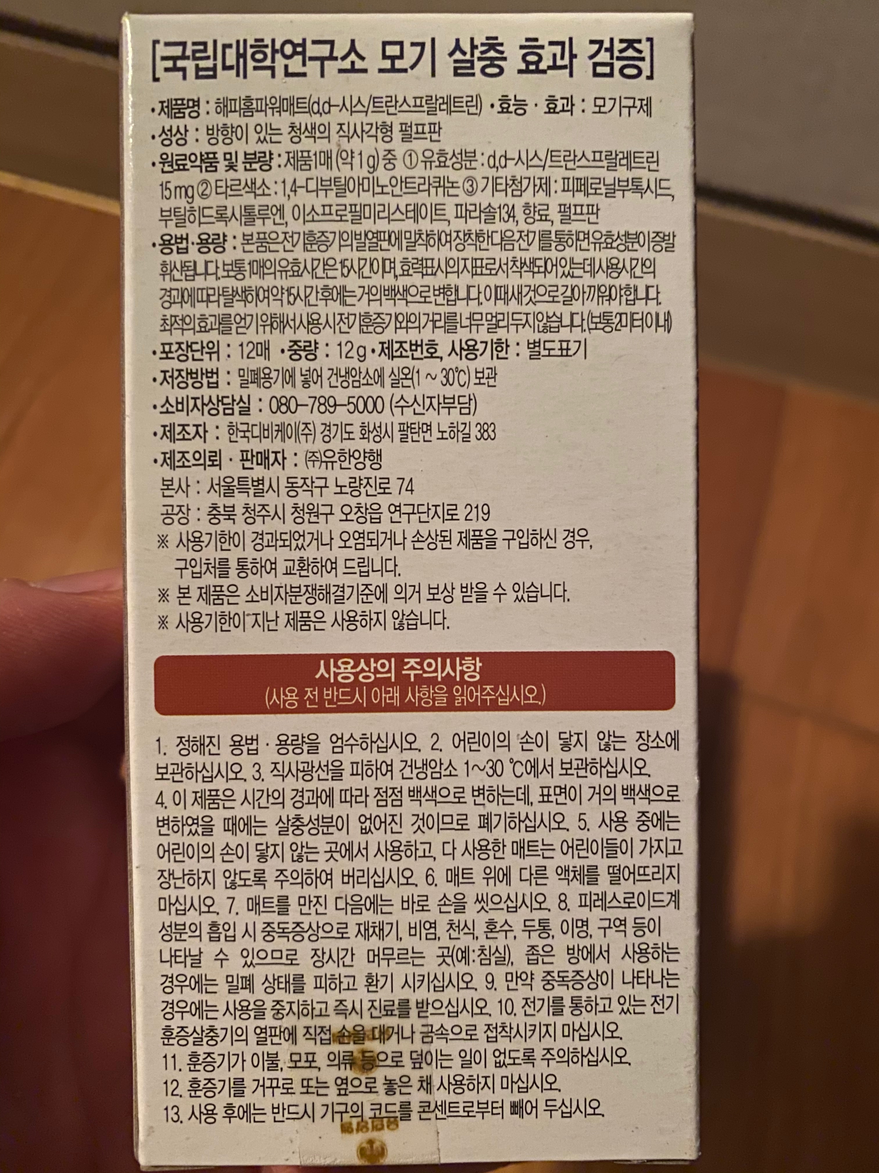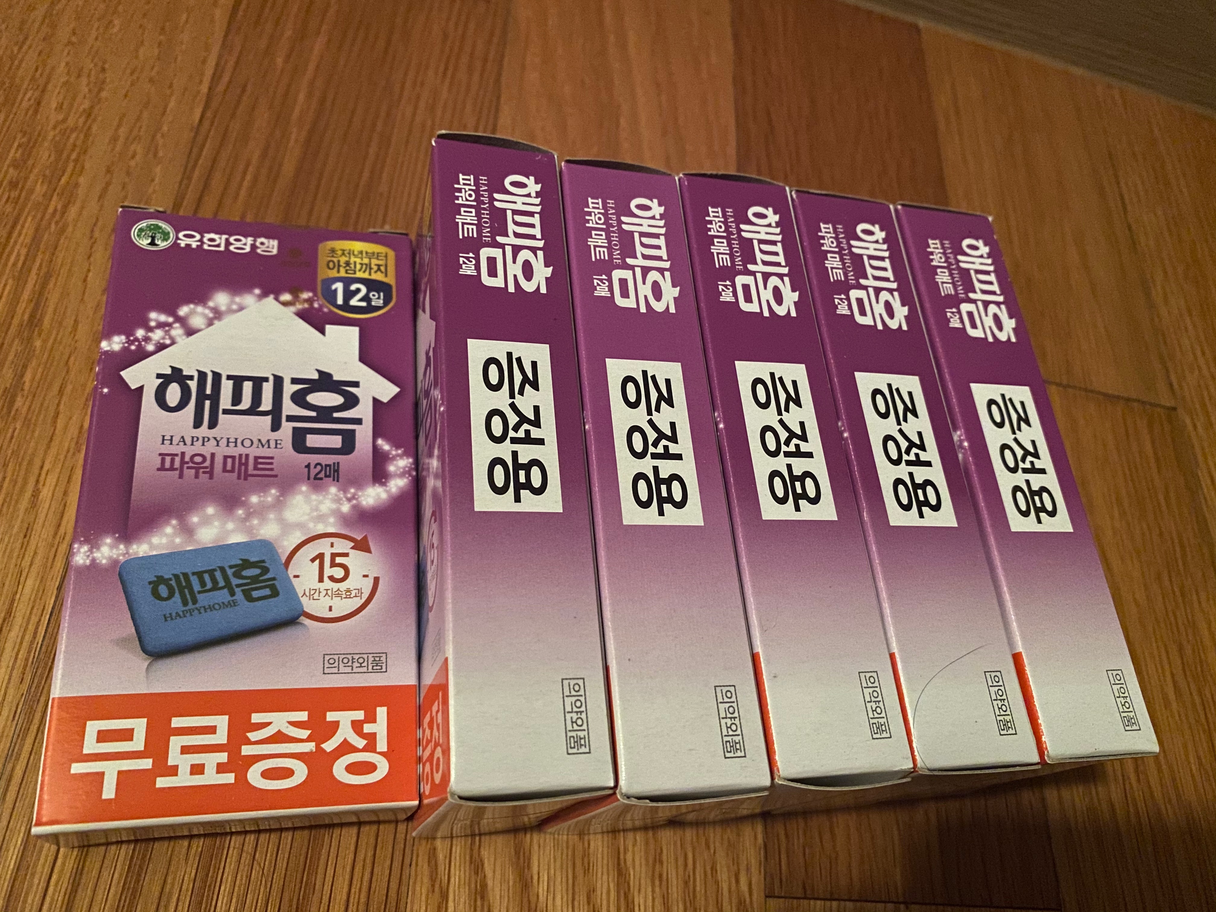 보이시나요? 12일치 무료 증정 매트 5셋트~ 각각 한 달씩 사용 가능합니다. 본체 두 개와 매트 60일치 합해서 만원 중반대에 구입을 했는데 확실히 가성비는 액체용보다 훨씬 좋은 거 같습니다.
