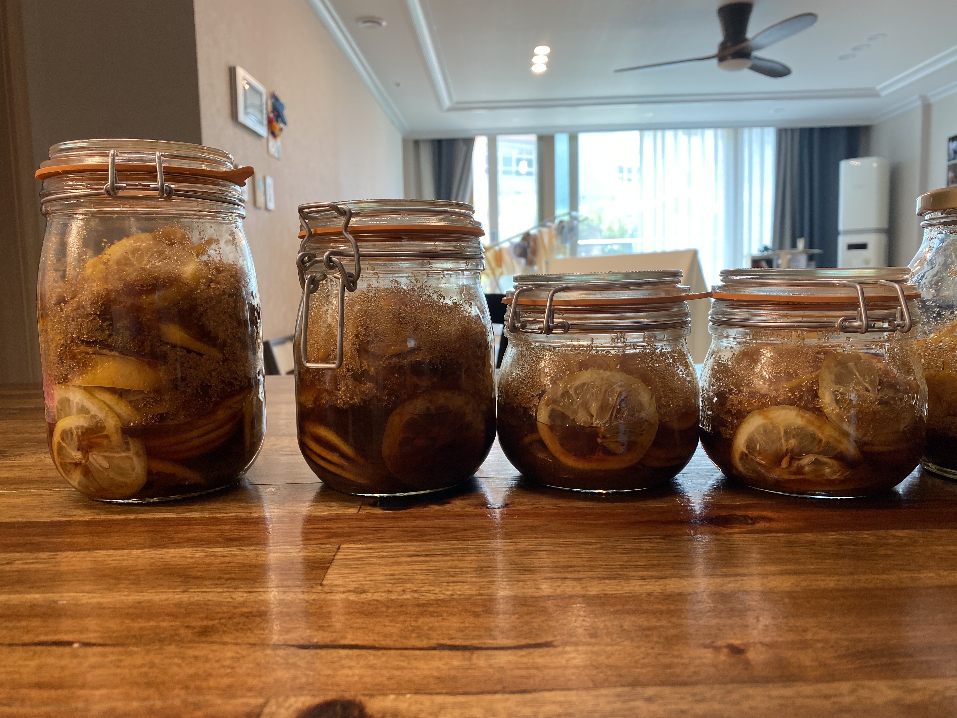 쨔잔~~ 두 시간 걸린 레몬청 담기가 드디어 끝을 냅니다. 유리병 용기도, 사탕수수 설탕도, 레몬도 모두 코스트코에서 사 온 제품으로 맛있는 레몬청을 담갔습니다. 룰루랄라~ 이번엔 제대로 맛이 나기를 기대하면서 이번 레몬청 담그기는 별다른 사고 없이 무사히 끝을 냈답니다. 아들을 위해 아빠의 사랑을 한가득 담은 레몬청으로 올여름 시원하게 달콤새콤 레모네이드 한잔 즐겨봐야 겠습니다.