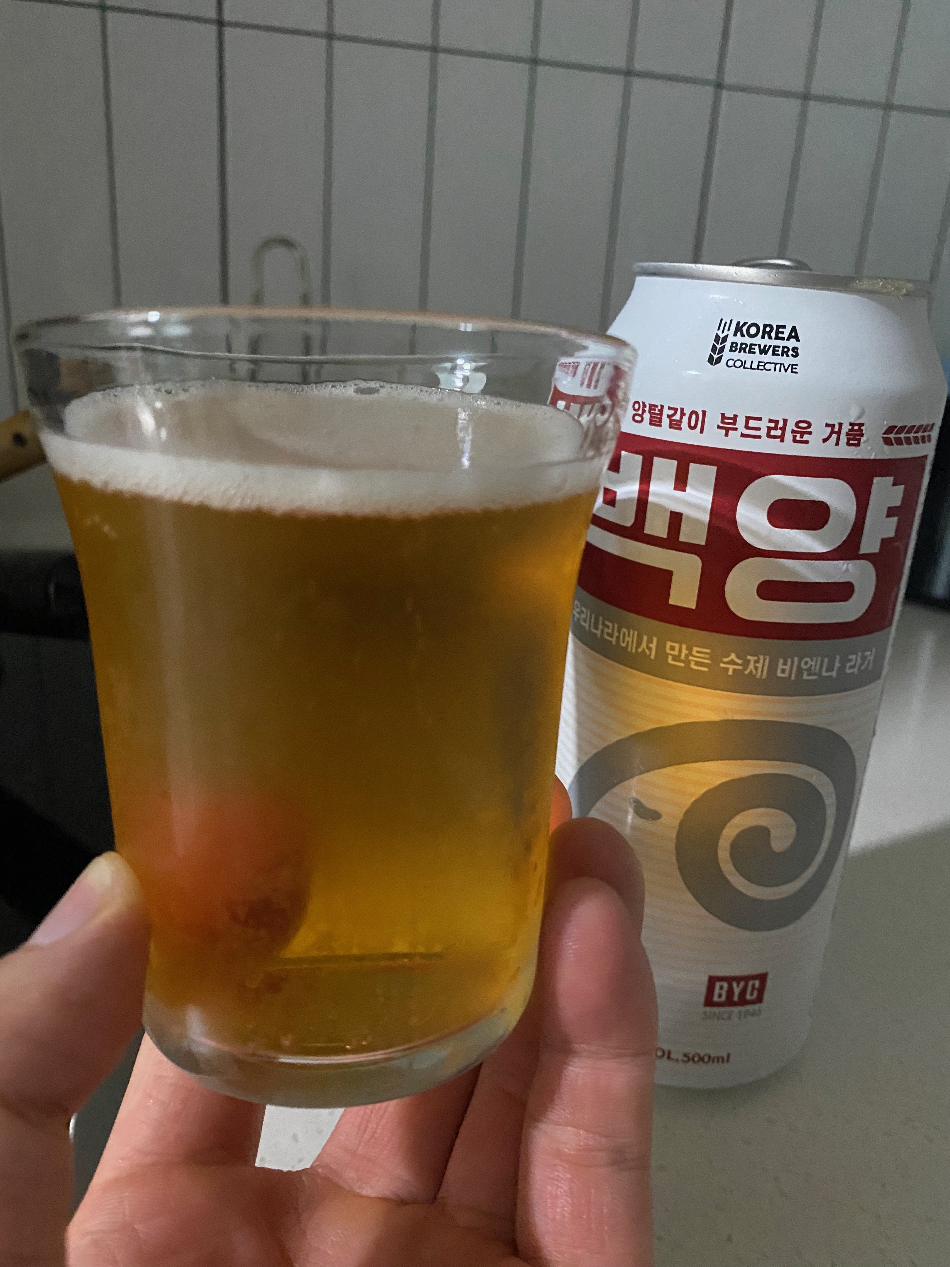 맥주 맛있게 먹는 방법은 확실히 캔상태로 마시는 것보다는 컵에 따라서 거품이 어느 정도 올라오고 살짝 가라앉은 다음 마시는 맥주가 정말 맛있는 거 같습니다. 개인 입맛이라 기호에 따라 다를 수 있지만 제 입맛은 그렇다는 겁니다. 중요한 건 캔으로 먹는 맛이 제일 맛이 없고, 거품 없이 따라서 마시는 게 두 번째, 거품 올라오자 마시는 게 세 번째로 맛이 없다는 겁니다. 풍미가 돌면서 특유의 향까지 느낄 수 있는 단계가 거품이 가라앉는 단계에서 살짝 기다려 준다랄까요~ 그때 마시는 맥주가 가장 풍미도 좋고 향도 느낄 수 있는 거 같습니다. 백양 byc 맥주는 일단 요렇게 마셔야 수제 맥주라는 그 맛을 제대로 느낄 수 있는 거 같습니다. 시음용으로 한 캔만 구입해서 정확한 맛을 평가하긴 그렇지만 하이트, 오비에서 나오는 브랜드 맥주보단 훠~얼씬 맛이 좋습니다. 테라가 국산 라거 맥주에선 가장 신선하고 맛이 좋았는데 하이트는 가볍달까요~ 아쉬웠는데 백양 byc 맥주는 오비에서 만들었지만 가볍지도 않고 오비 특유의 너무 묵직하지도 않은 밸런스가 제법 좋은 라거 맥주인 거 같습니다. 글 쓰면서도 살짝 침이 고이는 게 집 가는 길에 재구매 해서 다시 맛을 느껴봐야 겠습니다~ㅋㅋ 참~! 맥주 구입할 때 팁은 네 캔에 만원 ~ 요렇게 많이 팔쟈나요? 하나 단품은 3천 원 정도 하는데 제가 구입했을 때 곰표 네 캔에 백양 한 캔 요렇게 구입을 했거든요. 계산해보면 만 삼천 원이 나와야 하는데 어라? 같이 묶음으로 들어가서 백양도 25백 원으로 읽히더군요. 그래서 12,500원에 구입을 했습니다. 네 캔 묶음 다음에 낱개로 구입하는 맥주는 같이 묶인다는 걸 이제 알았네용^^ 참고하세요.