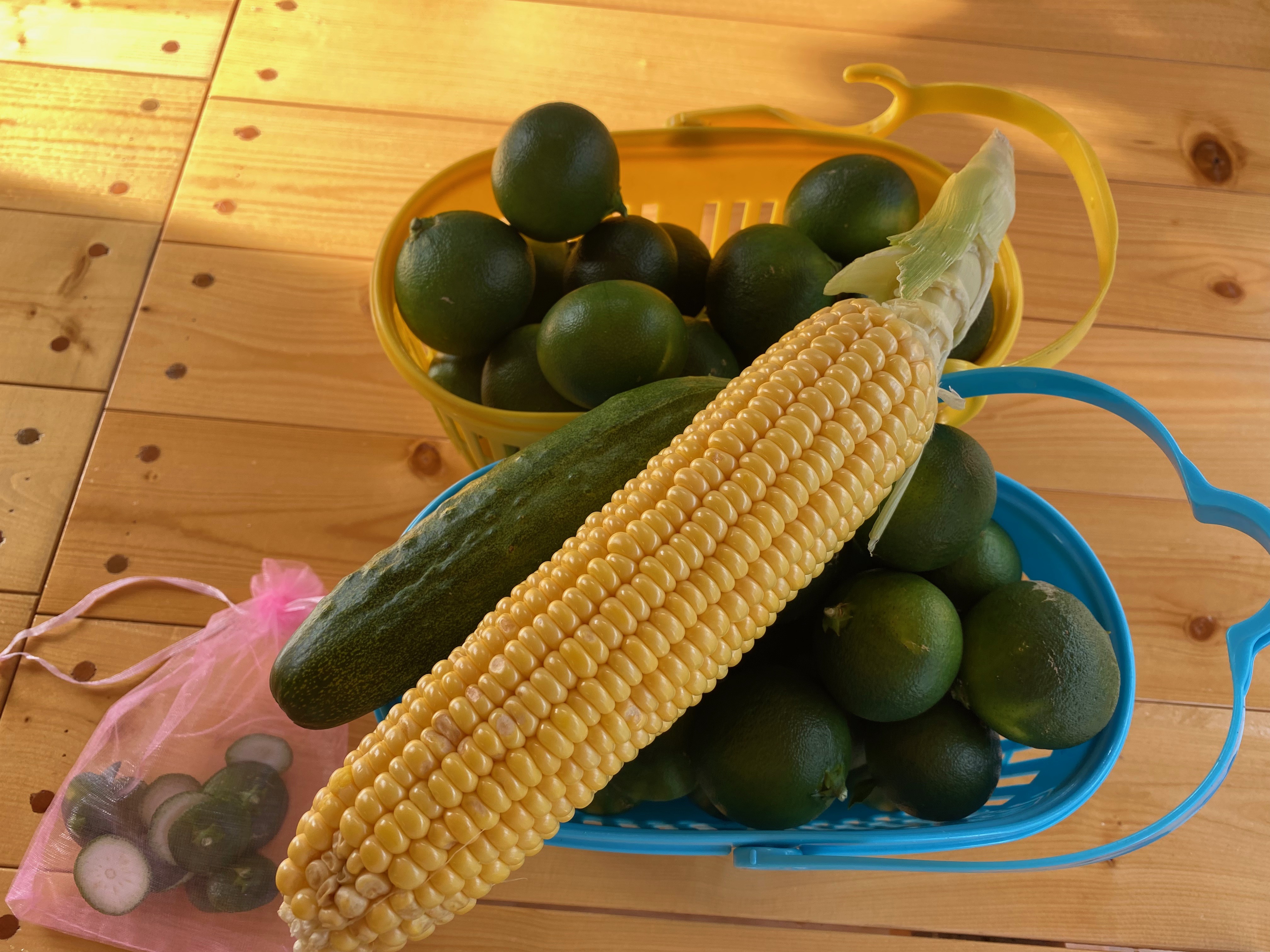 요 두 바구니가 엄빠가 딴 청귤이고 집에 가져가서 청을 담을 거예요. 그리고 선물로 주신 큼직한 옥수수~ 요거 겁나 맛있었습니다. 오이도 어째 그리 달콤하고 싱싱하던지~ 귤사랑 사장님~ 정말 친절하게 아들에게 좋은 귤 따기 체험과 청귤청 담기 체험 시간을 가지게 해주셔서 넘넘 감사합니다^ 담에 감귤 나올 때 10월, 11월에 다시 방문할 수 있다면 재방문해서 귤 따기 체험도 해보도록 하겠습니다.