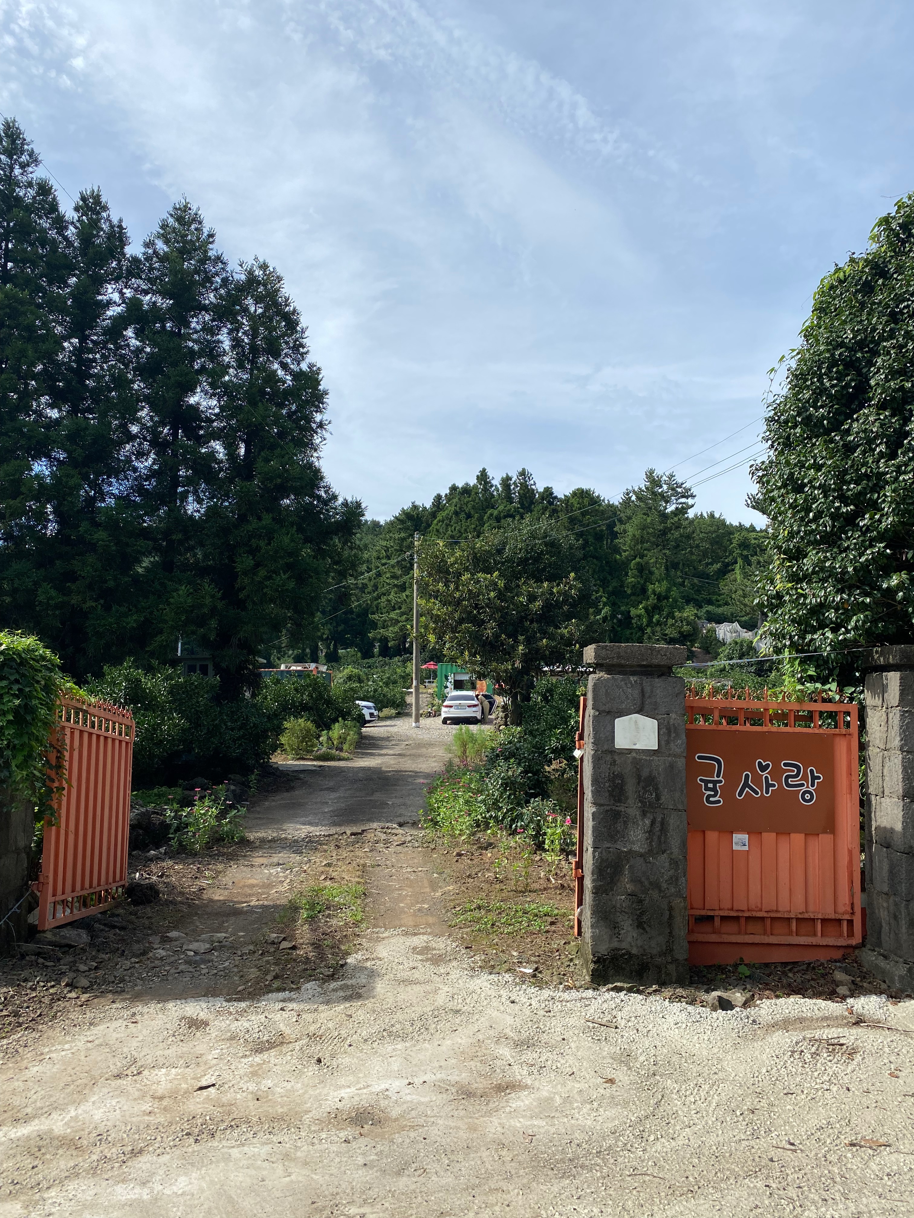 들어가는 입구에 귤사랑 간판이~ 오른쪽 컨테이너 건물 두동이 있는데 저기서 청귤청 담기 체험을 할 수 있습니다.