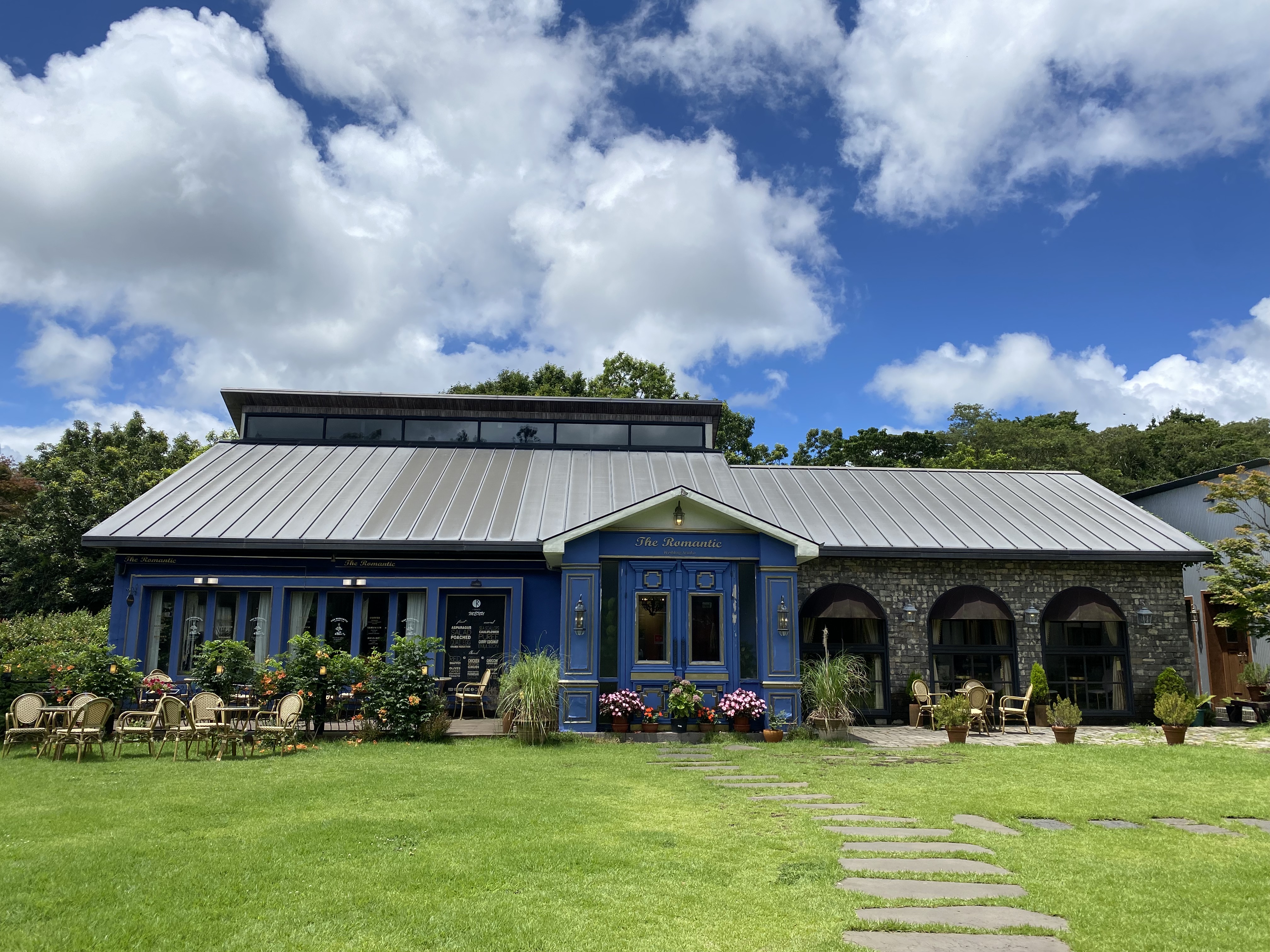 이번엔 제주 이른 여름휴가 맛집&카페 소개 글을 올려봅니다. 제주도 방문할 때마다 매번 꼭 들리는 식당이 있습니다. 성미가든이라고 닭고기 샤브샤브로 유명한 맛집이죠~ 제 블로그에도 맛집으로 소개한 글이 있어서 성미가든 소개는 아니고 마침 성미가든에서 밥을 먹고 커피나 한잔하고 싶어서 들른 카페가 너무 이쁘고 기억에 남아서 포스팅해봅니다. 카페 이름은 '더 로맨틱'인데요, 카페와 민박 그리고 사진촬영 스튜디오를 한꺼번에 운영하는 곳인데 넓은 잔디밭에 각각의 건물들이 따로 위치해 있습니다. 사진은 당연히 카페만 찍은 사진이지요.