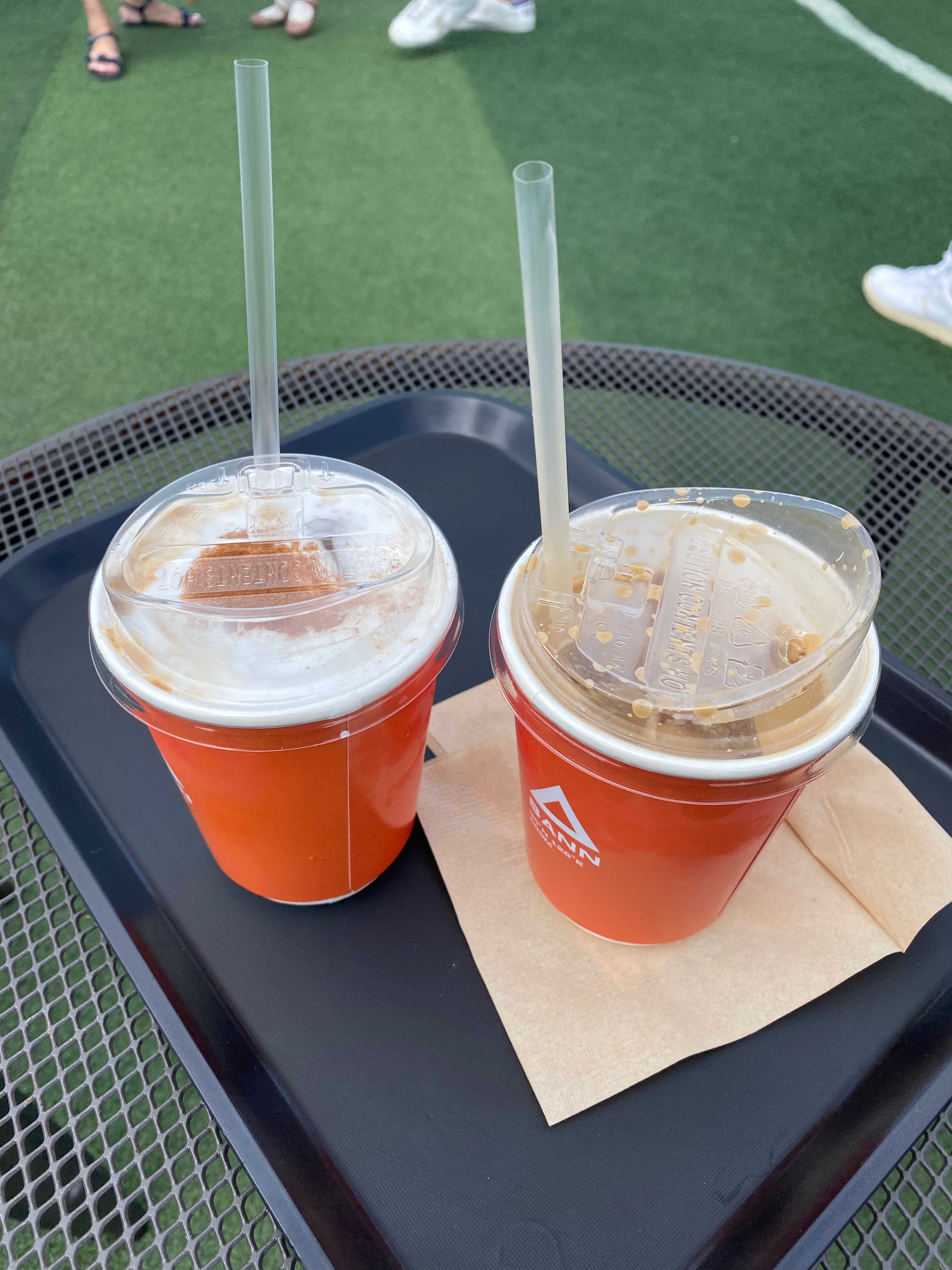 메뉴판은 찍을 여유 따윈 없습니다. 사람이 너무 많아서요. 빨리 주문하고 커피 나오길 기다리는데 세상에 아아 한 잔이 6천 원, 달달한 커피는 기본 7천 원..... 후덜덜한 가격이네요ㅠㅠ 후덜덜 하지만 커피를 받아서 야외 테이블에 앉아서 커피 한 잔을 마시면 충분히 납득이 될만합니다. 그렇다고 커피 맛이 좋다는 건 아닙니다.