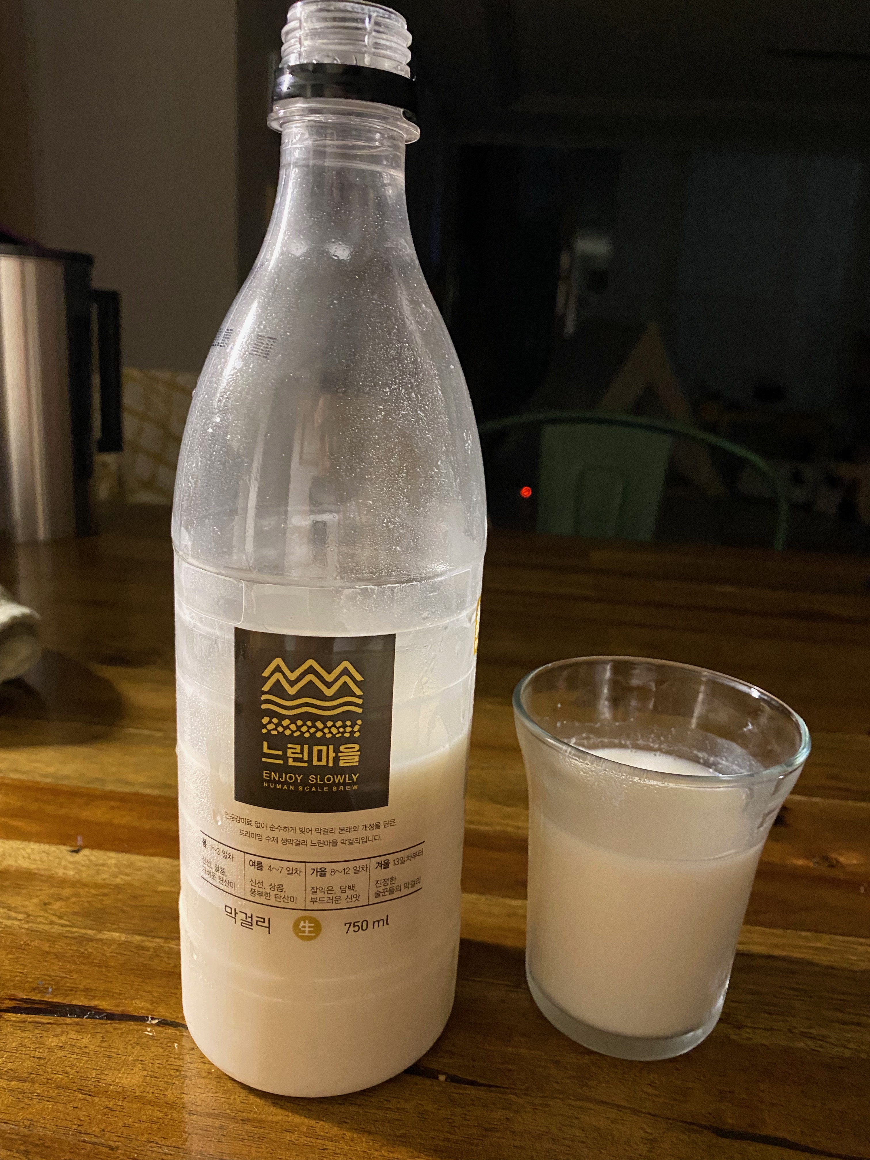 울집 가는 길에 있는 동네 편의점 cu는 아무래도 막걸리 얼리어답터가 사장님이신 거 같습니다. 당췌 시중에서 듣보잡 막걸리가 항상 진열되어 있는 걸 보면 말이죠. 저희 부부는 새로 보이는 막걸리는 꼭 맛을 봐야 하는 얼리어답터라서 말이죠 눈에 띄면 절대 그냥 못 넘어간답니다. 그래서 한 병 공수해 왔습니다. '느린마을' 막걸리입니다.